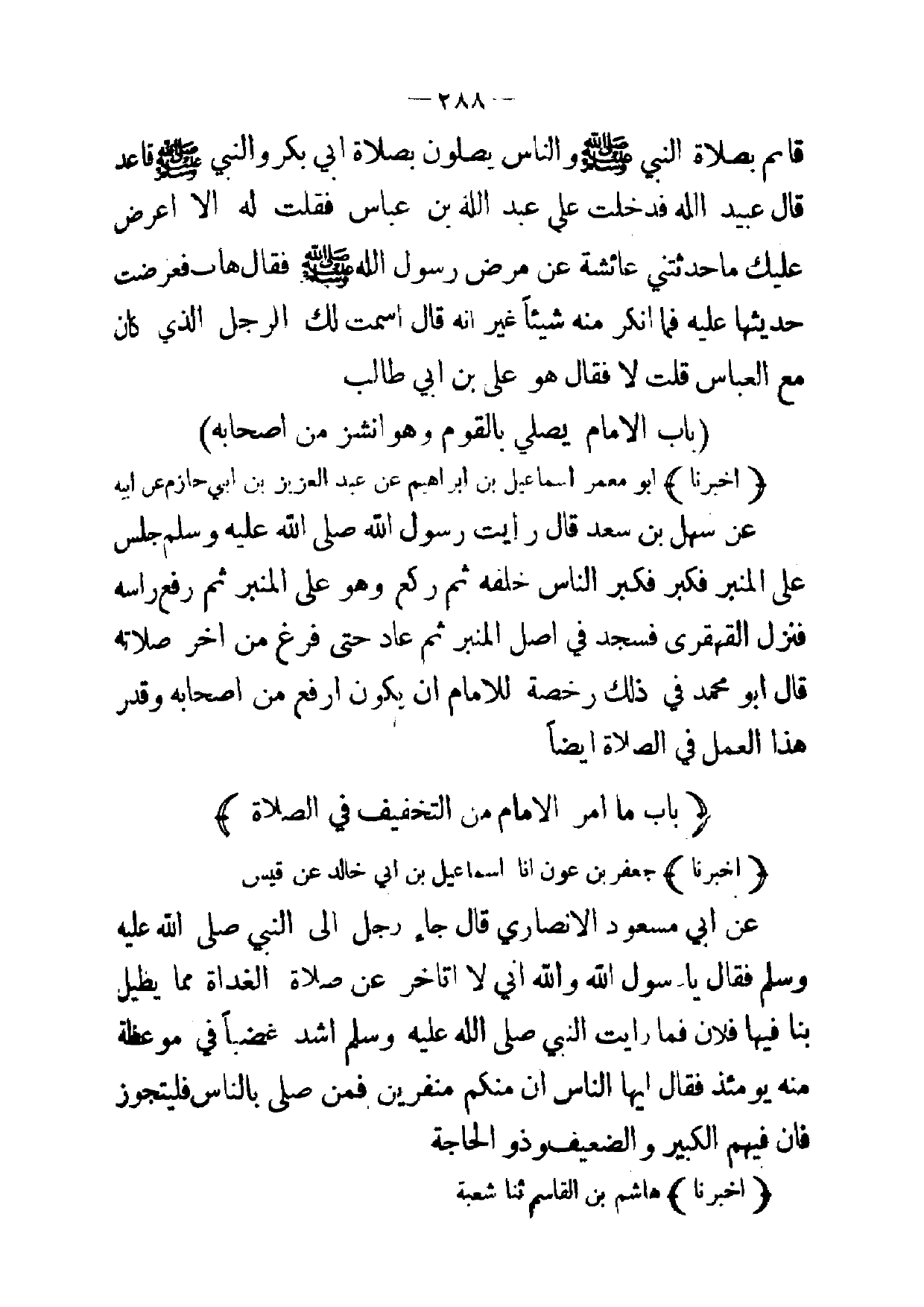 [ 288 ] قائم بصلاة النبي صلى الله عليه وآله والناس يصلون بصلاة ابي بكرو النبي صلى الله عليه وسلم قاعد قال عبيدالله فدخلت على عبد الله بن عباس فقلت له الا اعرض عليك ما حدثتني عائشة عن مرض رسول الله صلى الله عليه وسلم فقال هات فعرضت حديثها عليه فما انكر منه شيئا غير انه قال اسمت لك الرجل الذي كان مع العباس قلت لا فقال هو على بن ابي طالب