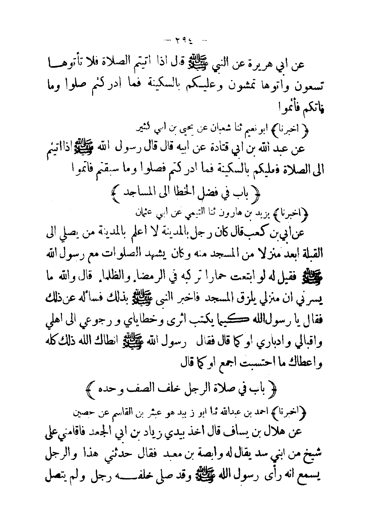 [ 294 ] عن ابي هريرة عن النبي صلى الله عليه وسلم قال إذا اتيتم الصلاة فلا تأتوها تسعون واتوها تمشون وعليكم بالسكينة فما ادركتم صلوا وما فاتكم فأتموا