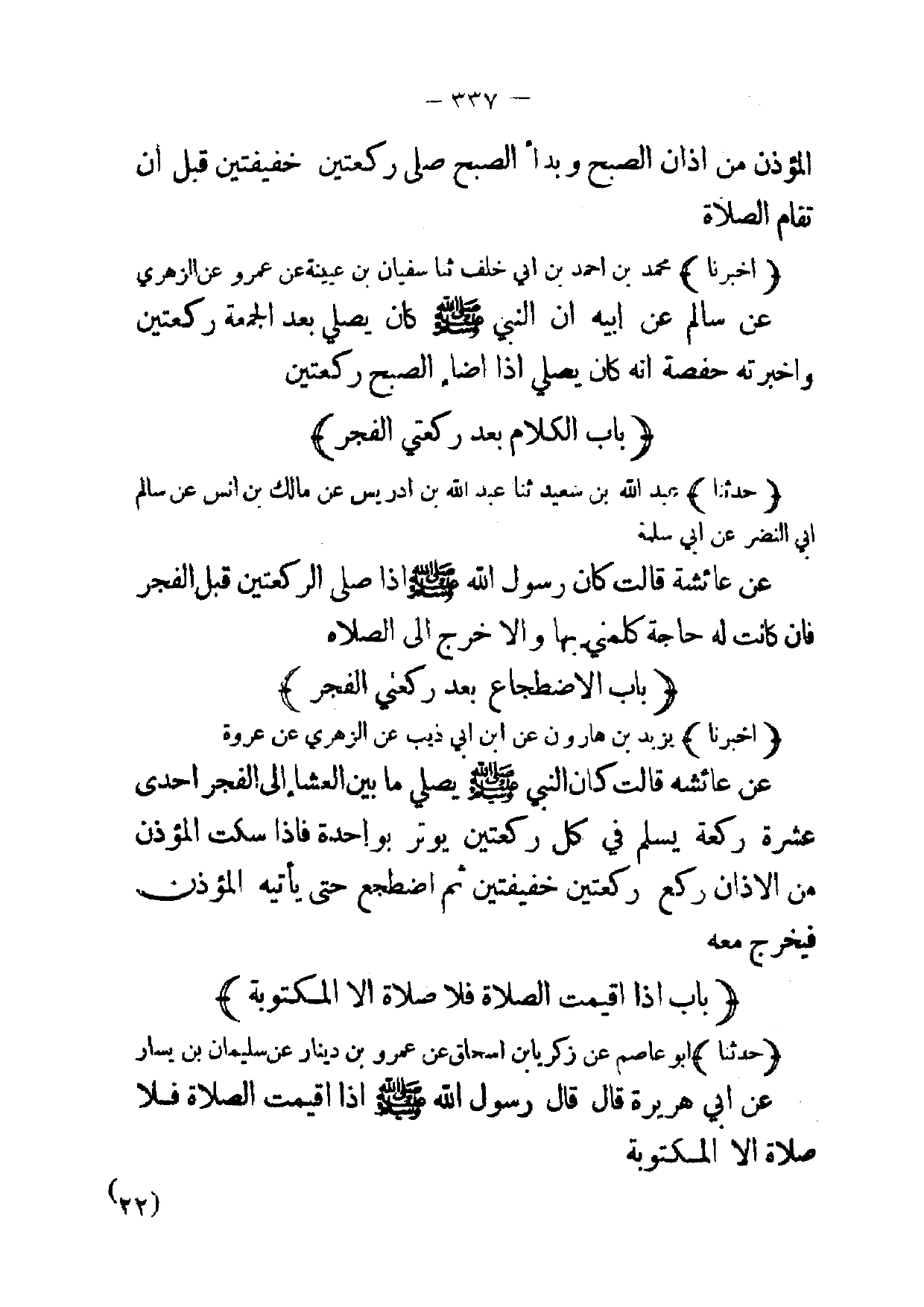 [ 337 ] المؤذن من اذان الصبح وبدأ الصبح صلى ركعتين خفيفتين قبل ان تقام الصلاة
