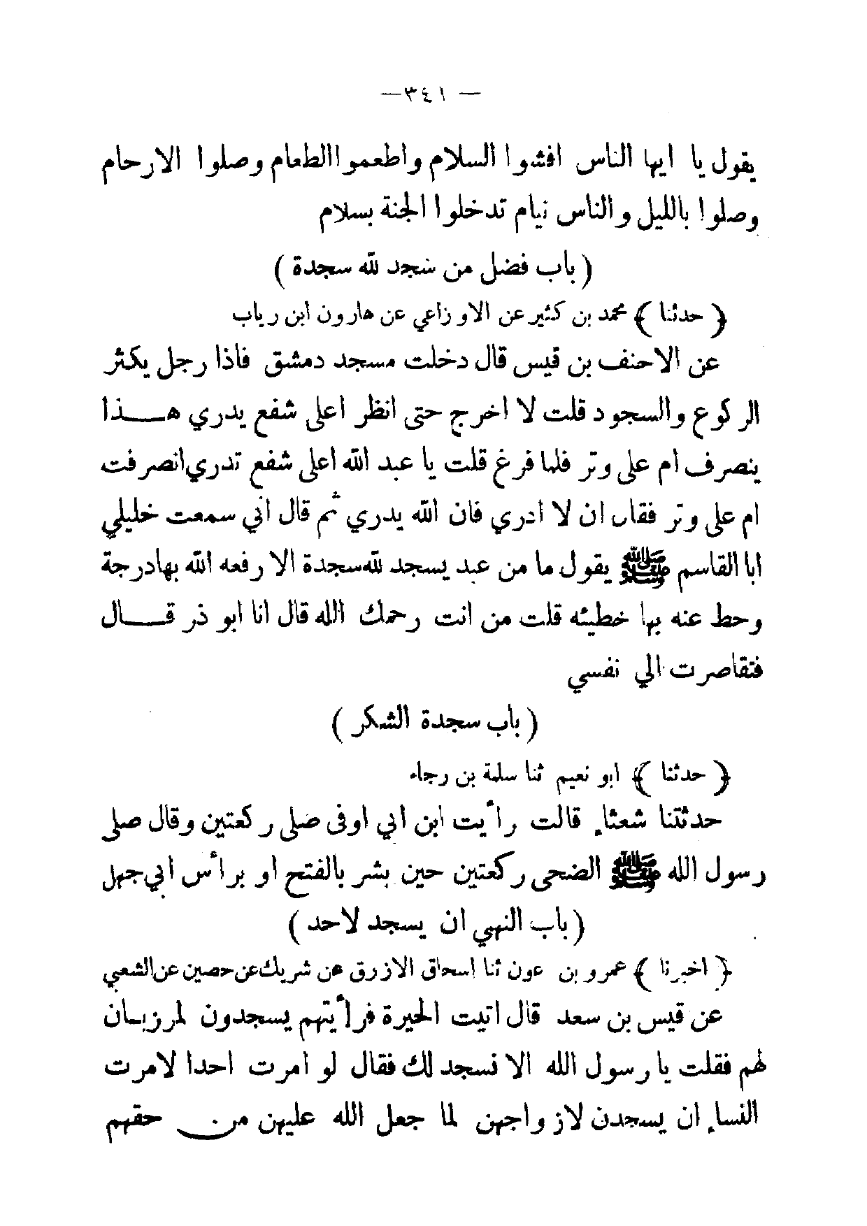 [ 341 ] يقول يا ايها الناس افشوا السلام واطعموا الطعام وصلوا الارحام وصلوا بالليل والناس نيام تدخلوا الجنة بسلام