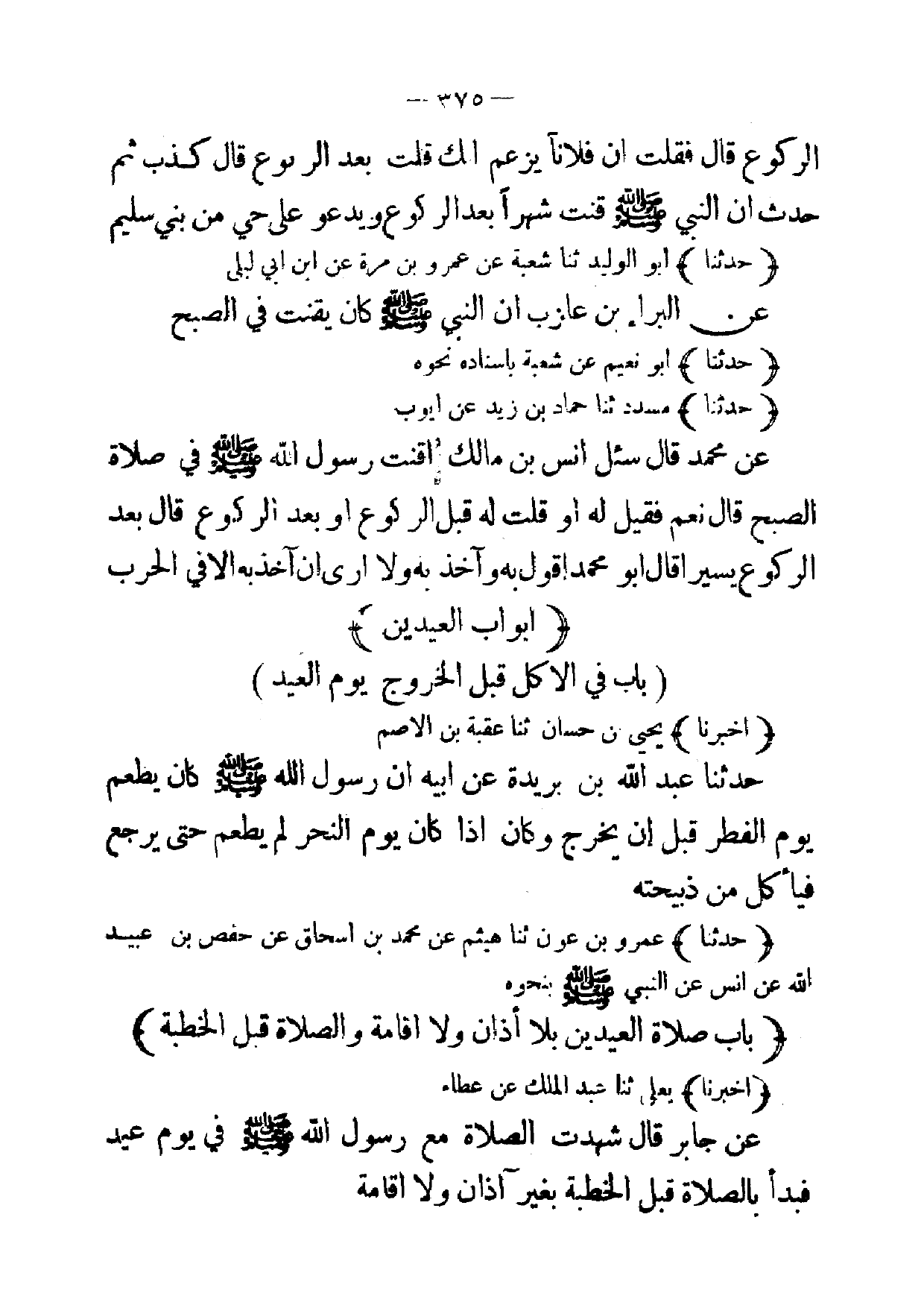 [ 375 ] الركوع قال فقلت ان فلانا يزعم انك قلت بعد الركوع قال كذب ثم حدث ان النبي صلى الله عليه وسلم قنت شهرا بعد الركوع ويدعو على حي من بني سليم