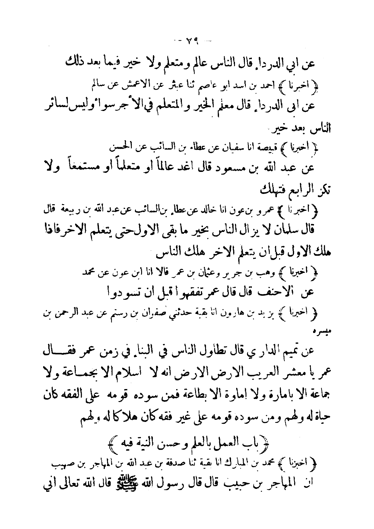 (باب العمل بالعلم وحسن النية فيه)