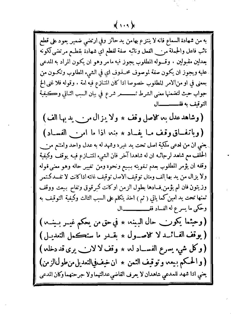 (وشاهد عدل به الأصل وقف ... ولا يزال من يد بها ألف)