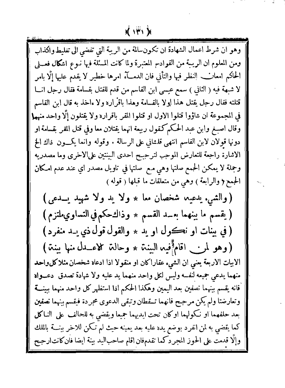 (والشيء يدعيه شخصان معا ... ولا يد ولا شهيد يدعى)