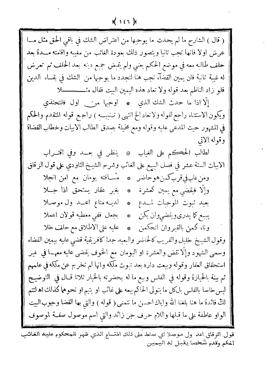 الأبيات الستة عشر في فصل البيع على الغائب وشرح الشيخ التاودي على قول الزقاق