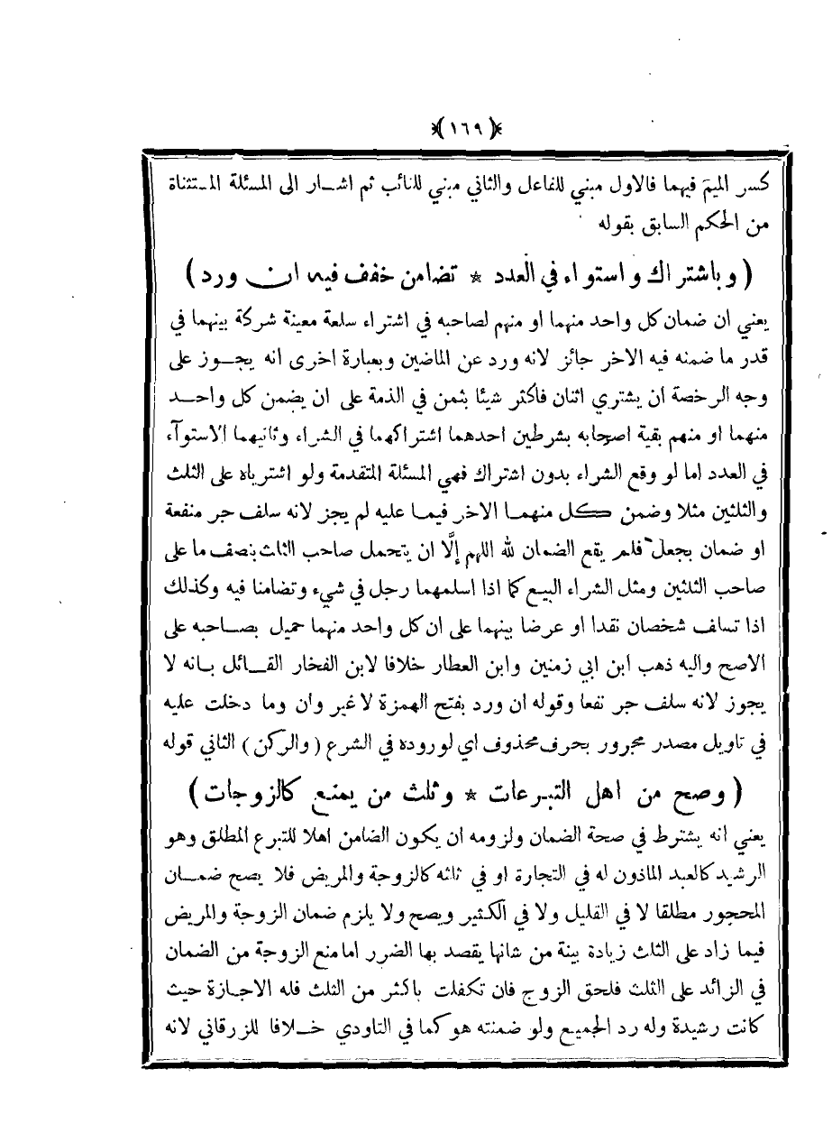 (وباشتراك واستواء في العدد ... تضامن خفف فيه أن ورد)