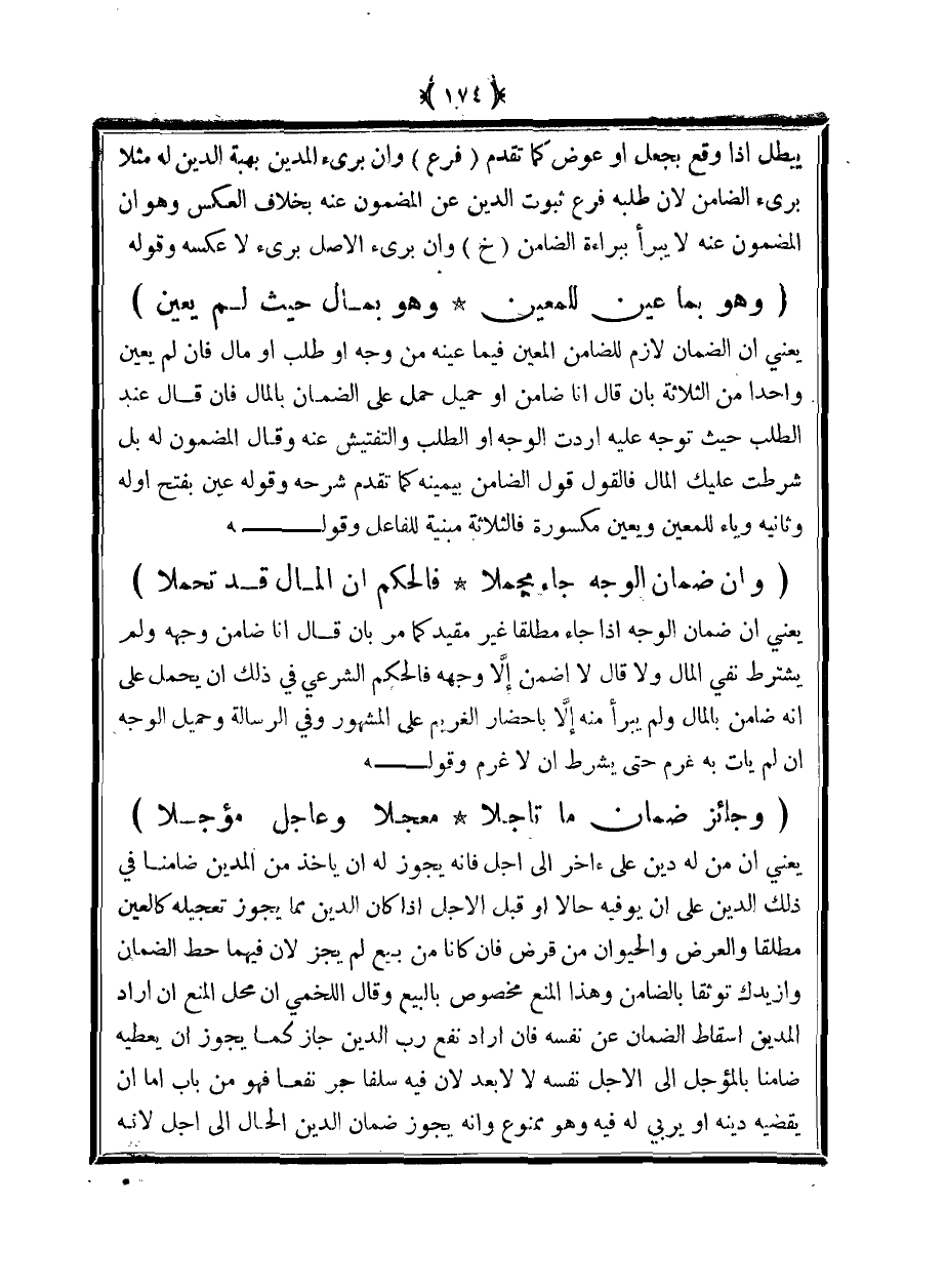(وجائز ضمان ما تأجلا ... معجلا وعاجل مؤجلا)