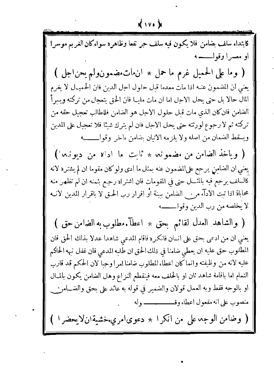 (وضامن الوجه على من أنكرا ... دعوى أمري. خشية أن لا يحضرا)