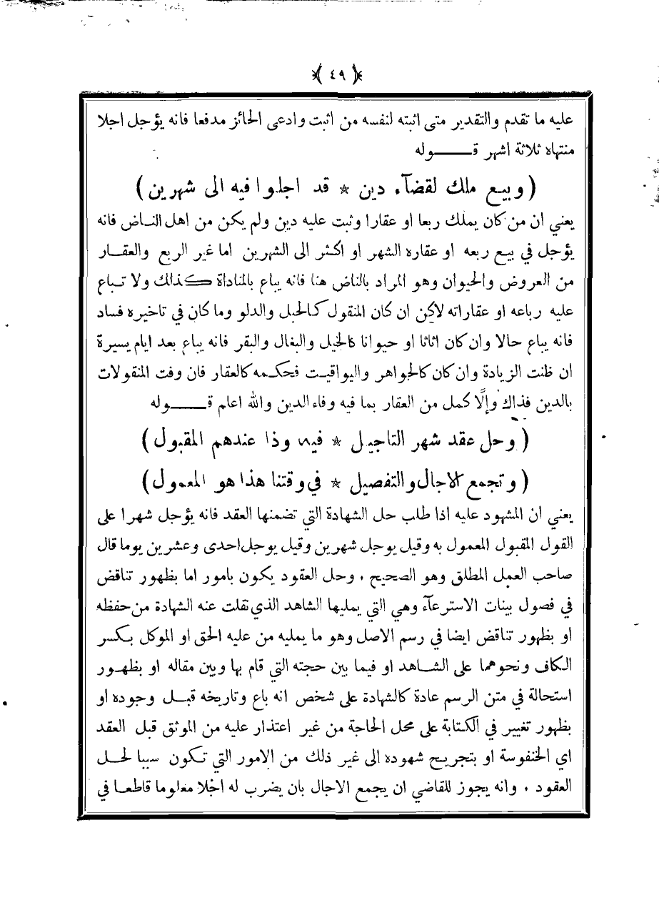 (وبيع ملك لقضآء دين ... قد اجلوا فيه إلى شهرين)