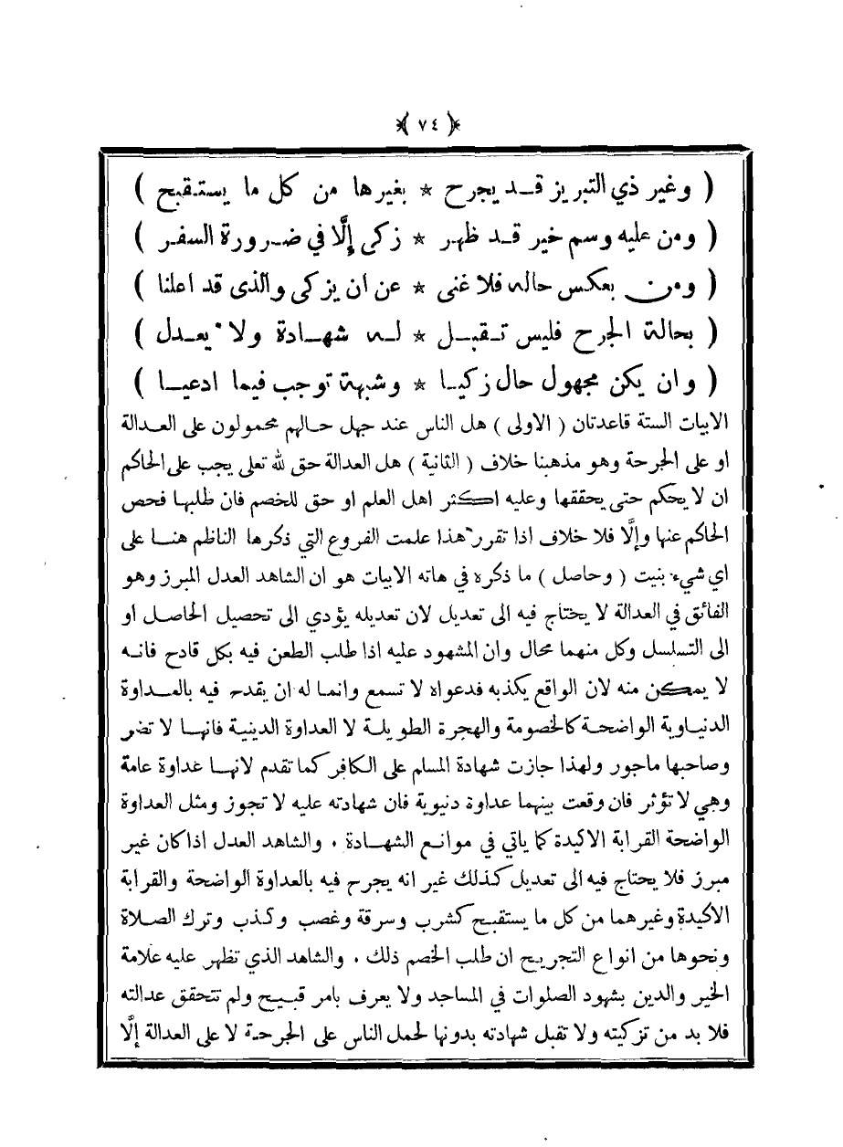 (بحالة الجرح فليس تقبل ... له شهادة ولا يعدل)