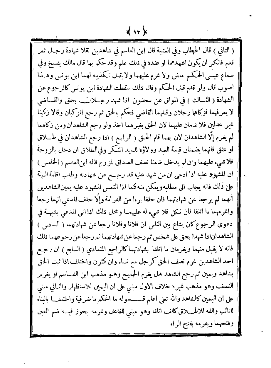 (الثاني) قال الحطاب وفي العتبية قال ابن القاسم في شاهدين نثلا شهادة رجل ثم قدم فأنكر أن يكون أشهدهما أو عنده في ذلك علم وقد حكم بها قال مالك يفسخ وفي سماع عيسى الحكم ماض ولا غرم عليهما ولا يقبل تكذيبه لهما ابن يونس وهذا أصوب قال ولو قدم قبل الحكم وقال ذلك سقطت الشهادة ابن يونس كالرجوع عن الشهادة (الثالث) في المواق عن سحنون إذا شهد رجلان بحق والقاضي لا يعرفهما فزكاهما رجلان وقبلهما القاضي فحكم بالحق ثم رجع المزكيان وقالا زكينا غير عدلين فلا ضمان عليهما لأن الحق بغيرهما أخذ ولو رجع الشاهدان ومن زكاهما لم يغرم إلا الشاهدان لأن بهما قام الحق (الرابع) إذا رجع الشاهدان في طلاق أو عتق فإنهما يضمنان قيمة العبد وولاؤه للسيد المنكر وفي الطلاق أن دخل بالزوجة فلا شيء عليهما وإن لم يدخل ضمنا نصف الصداق للزوج قاله ابن القاسم (الخامس) أن المشهود عليه إذا ادعى أن من شهد عليه قد رجع عن شهادته وطلب إقامة البينة على ذلك فإنه يجاب إلى مطلبه ويمكن منه كما إذا التمس لمشهود عليه يمين الشاهدين أنهما لم يرجعا عن شهادتهما فإن حلفا برءًا من الغرامة وإلا حلف المدعي أنهما رجعا وأغرمهما ما أتلفا فإن نكل فلا شيء له عليهما ومحل ذلك إذا أتى المدعي بشبهة في دعوى الرجوع كان يشاع بين الناس أن فلانًا وفلانًا رجعا عن شهادتهما (السادس) الشاهدان إذا شهدا بحق على شخص ثم رجعا عن شهادتهما ثم رجعا عن رجوعهما ذلك فإنه لا يقبل منهما ويغرمان ما أتلفا بشهادتهما كالراجع المتمادي (السابع) أن رجع أحد الشاهدين غرم نصف الحق كرجل مع نساء وإن كثرن واختلف إذا ثبت الحق بشاهد ويمين ثم رجع الشاهد هل يغرم الجميع وهو مذهب ابن القاسم أو يغرم النصف وهو مذهب غيره خلاف الأول مبني على أن اليمين للاستظهار والثاني مبني على أن اليمين كالشاهد والله تعالى أعلم قوله ما الحكم ما ضر فيه واختلفا بالبناء للنائب وألفه للإطلاق كألف أتلفا وهو مبني للفاعل وغرمه يجوز فيه ضم الغين وفتحهما ويغرمه بفتح الراء