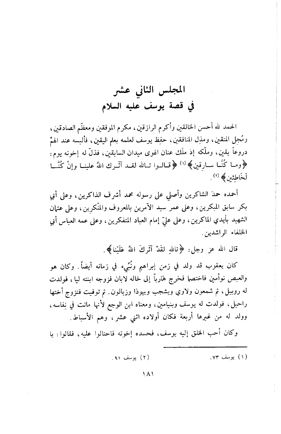 أَحْمَدُهُ حَمْدَ الشَّاكِرِينَ وَأُصَلِّي عَلَى رَسُولِهِ مُحَمَّدٍ أَشْرَفِ الذَّاكِرِينَ , وَعَلَى أَبِي بَكْرٍ سَابِقِ الْمُبَكِّرِينَ , وَعَلَى عُمَرَ سَيِّدِ الآمِرِينَ بِالْمَعْرُوفِ وَالْمُنْكِرِينَ , وَعَلَى عُثْمَانَ الشَّهِيدِ بِأَيْدِي الْمَاكِرِينَ , وَعَلَى عَلِيٍّ إِمَامِ الْعُبَّادِ الْمُتَفَكِّرِينَ , وَعَلَى عَمِّهِ الْعَبَّاسِ أَبِي الْخُلَفَاءِ الرَّاشِدِينَ.