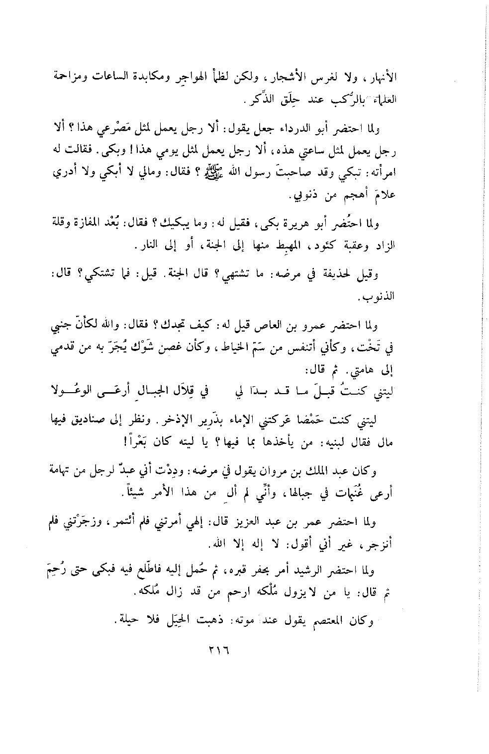 وَكَانَ عَبْدُ الْمَلِكِ بْنُ مَرْوَانَ يقول في مرضه: وددت إني عبد لرحل مِنْ تِهَامَةَ أَرْعَى غُنَيْمَاتٍ فِي جِبَالِهَا وَأَنِّي لَمْ أَلِ مِنْ هَذَا الأَمْرِ شَيْئًا.