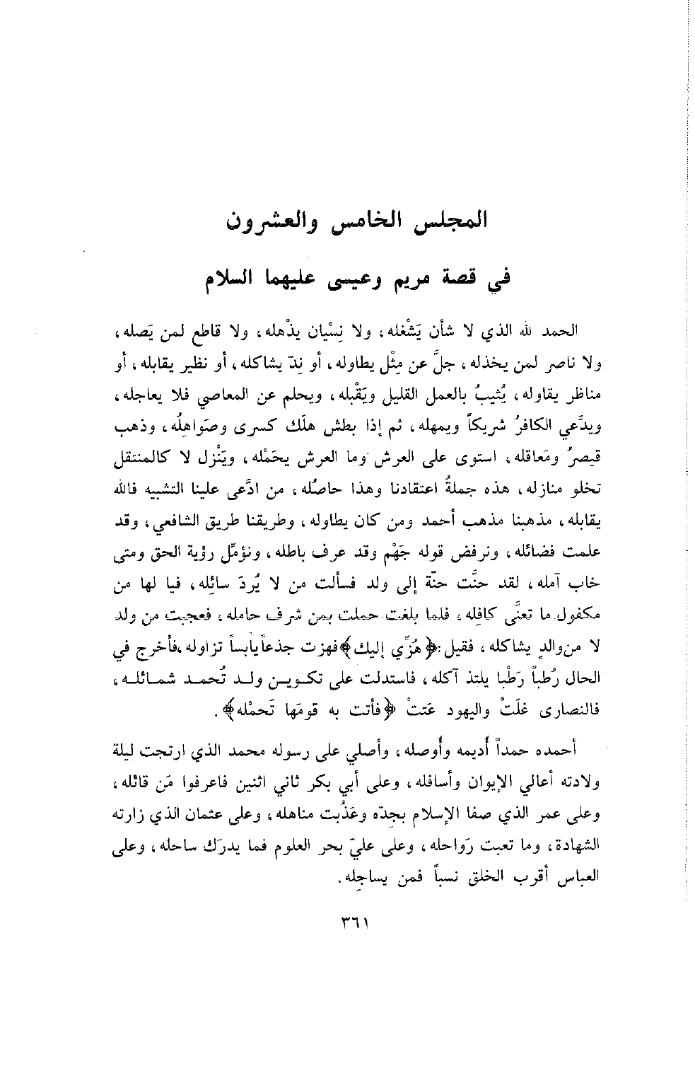 أَحْمَدُهُ حَمْدًا أُدِيمُهُ وَأُوصِلُهُ , وَأُصَلِّي عَلَى رَسُولِهِ مُحَمَّدٍ الَّذِي ارْتَجَّتْ لَيْلَةَ وِلادَتِهِ أَعَالِي الإِيوَانِ وَأَسَافِلُهُ , وَعَلَى أَبِي بَكْرٍ ثَانِيَ اثْنَيْنِ فَاعْرِفُوا مَنْ قَائِلُهُ , وَعَلَى عُمَرَ الَّذِي صَفَا الإِسْلامُ بِجِدِّهِ وَعَذُبَتْ مَنَاهِلُهُ , وَعَلَى عُثْمَانَ الَّذِي زَارَتْهُ الشَّهَادَةُ وَمَا تَعِبَتْ رَوَاحِلُهُ , وَعَلَى عَلِيٍّ بَحْرِ الْعُلُومِ فَمَا يُدْرَكُ سَاحِلُهُ , وَعَلَى الْعَبَّاسِ أَقْرَبِ الْخَلْقِ نَسَبًا فَمَنْ يُسَاجِلُهُ.