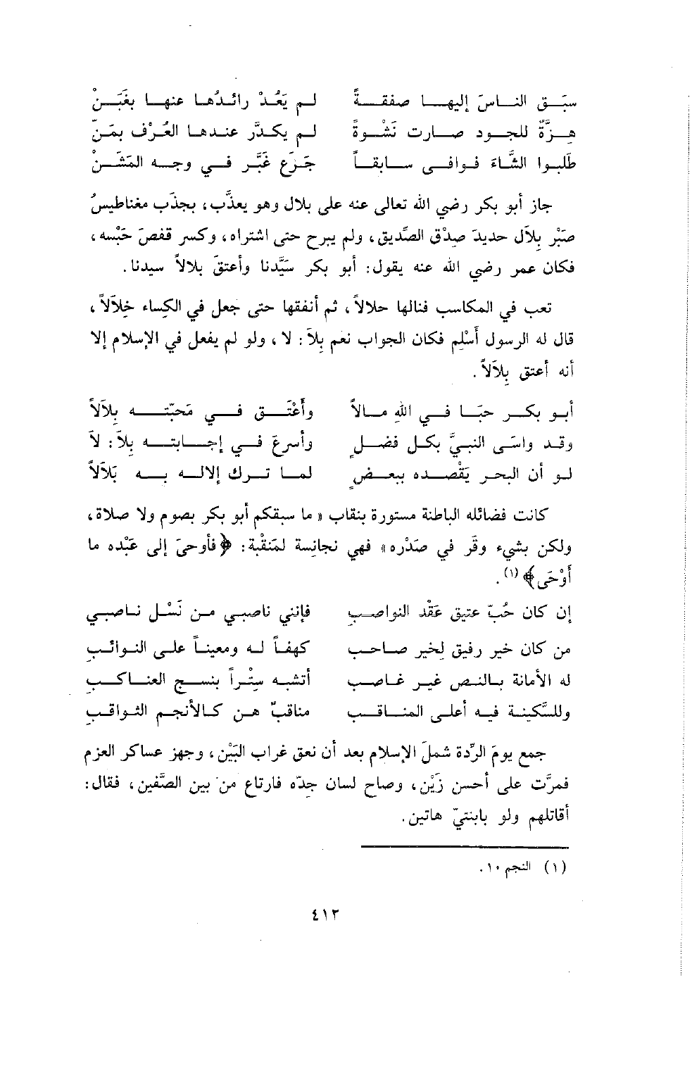(أَبُو بَكْرٍ حَبَا فِي اللَّهِ مَالا ... وَأَعْتَقَ فِي مَحَبَّتِهِ بِلالا)