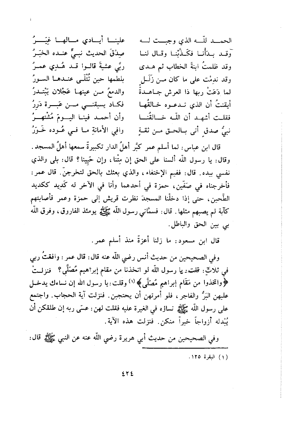 (وَقَدْ ظَلَمْتُ ابْنَةَ الْخَطَّابِ ثُمَّ هَدَى ... رَبِّي عَشِيَّةَ قَالُوا قَدْ هُدِي عُمَرُ)
