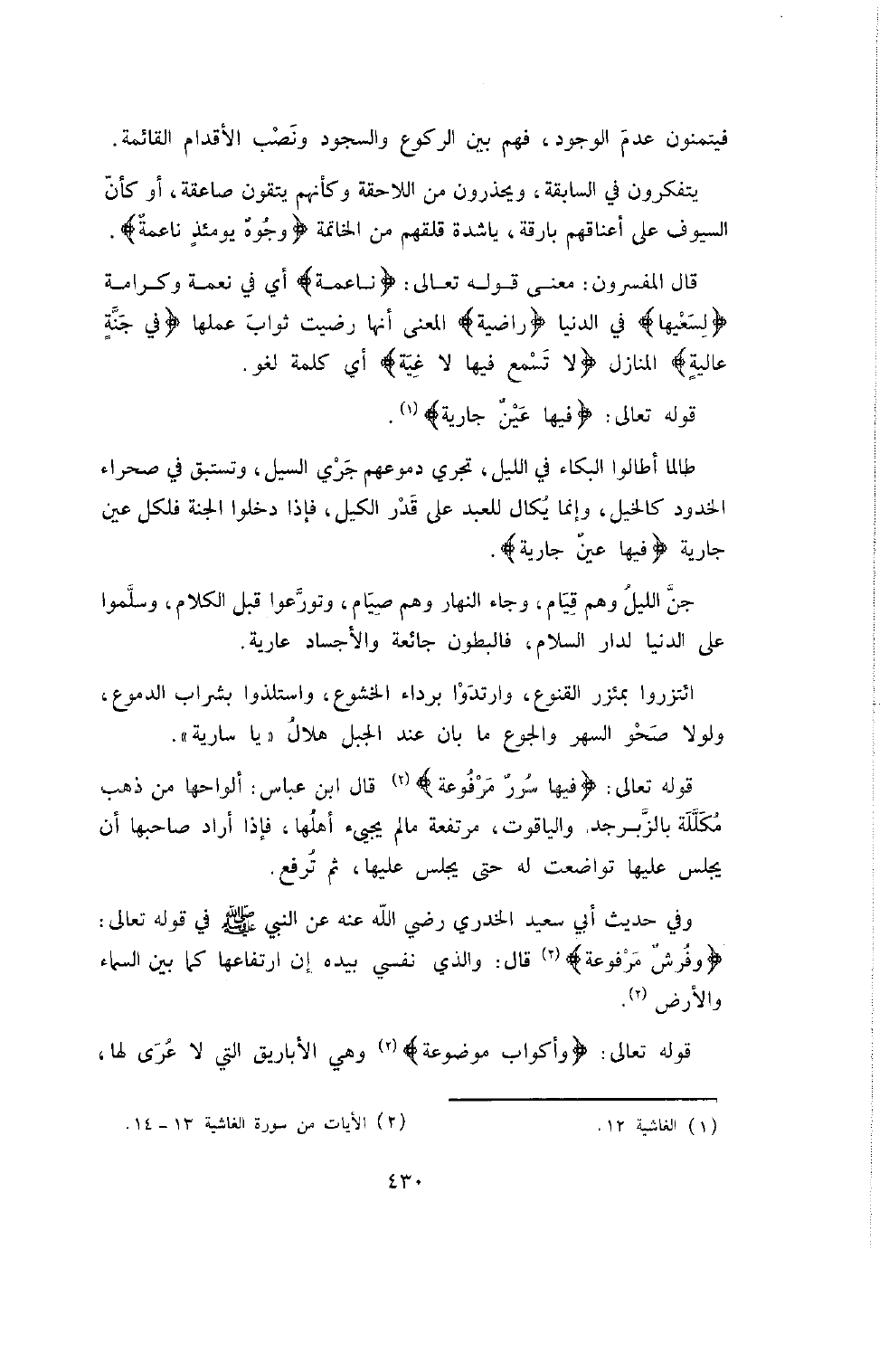 طَالَمَا أَطَالُوا الْبُكَاءَ فِي اللَّيْلِ , تَجْرِي دُمُوعُهُمْ جَرْيَ السَّيْلِ , وَتَسْتَبِقُ فِي صَحْرَاءِ الْخُدُودِ كَالْخَيْلِ , وَإِنَّمَا يُكَالُ لِلْعَبْدِ عَلَى قَدْرِ الْكَيْلِ , فَإِذَا دَخَلُوا الْجَنَّةَ فَلِكُلِّ عَيْنٍ جَارِيَةٌ {فِيهَا عَيْنٌ جارية} .