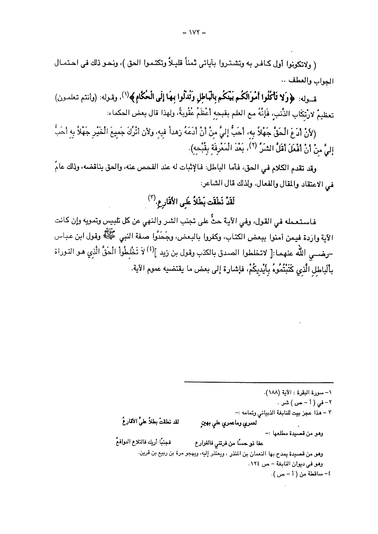 قوله: {وَلَا تَأْكُلُوا أَمْوَالَكُمْ بَيْنَكُمْ بِالْبَاطِلِ وَتُدْلُوا بِهَا إِلَى الْحُكَّامِ}، وقوله: {وَأَنْتُمْ تَعْلَمُونَ} تعظيم لارتكاب الذنب، فإنه مع العلم بقبحة لأعظم عقوبة، ولهذا قال بعض الحكماء: