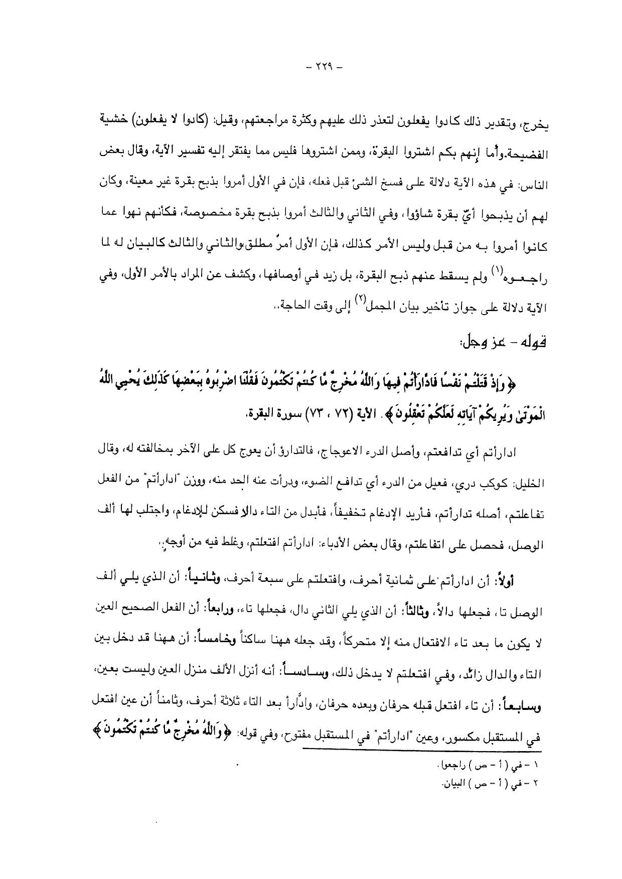 راجعوه ولم يسقط عنهم ذبح البقرة، بل ريد في أوصافها، وكشف عن المراد بالأمر الأول، وفي الآية دلالة على جواز تأخير بيان المجمل إلى وقت الحاجة ..