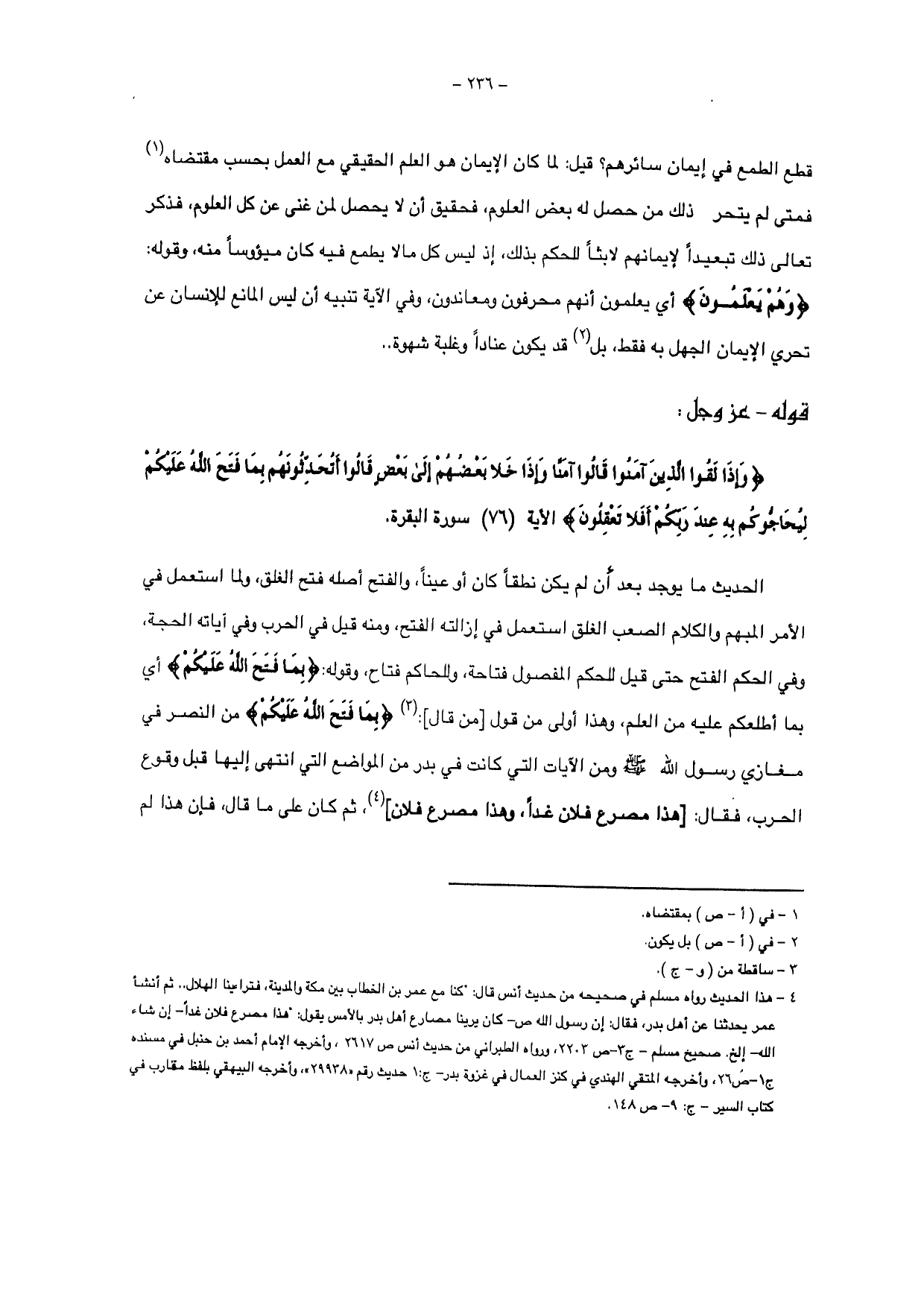 {وَإِذَا لَقُوا الَّذِينَ آمَنُوا قَالُوا آمَنَّا وَإِذَا خَلَا بَعْضُهُمْ إِلَى بَعْضٍ قَالُوا أَتُحَدِّثُونَهُمْ بِمَا فَتَحَ اللَّهُ عَلَيْكُمْ لِيُحَاجُّوكُمْ بِهِ عِنْدَ رَبِّكُمْ أَفَلَا تَعْقِلُونَ} الآية (76) سورة البقرة.