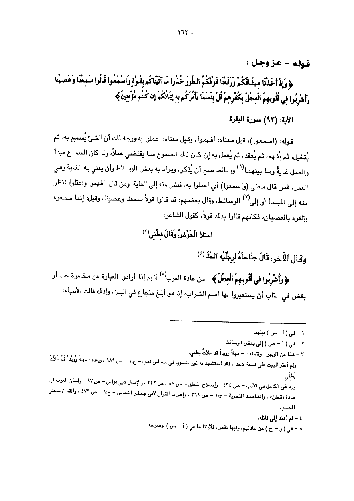 {وَأُشْرِبُوا فِي قُلُوبِهِمُ الْعِجْلَ} ...