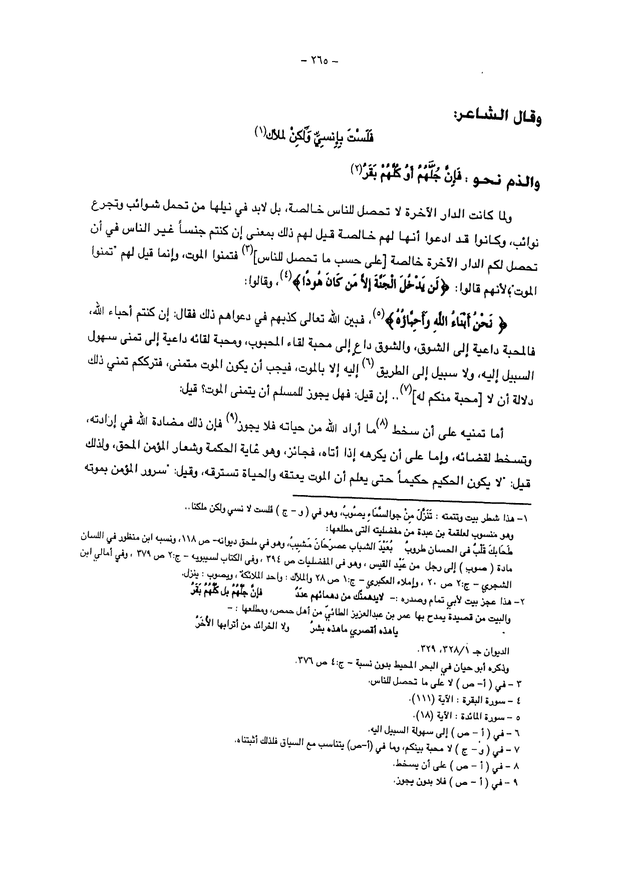{نَحْنُ أَبْنَاءُ اللَّهِ وَأَحِبَّاؤُهُ}، فبين الله تعالي كذبهم في دعواهم ذلك فقال: إن كنتم أحباء الله، فالمحبة داعية إلى الشوق، والشوق داع إلى محبة لقاء المحبوب، ومحبة لقائه داعية إلي تمنى سهول السبيل إليه، ولا سبيل إلى الطريق إليه إلا بالموت، فيجب أن يكون الموت متمنى، فترككم تمني ذلك دلالة أن لا [محبة منكم له] ..