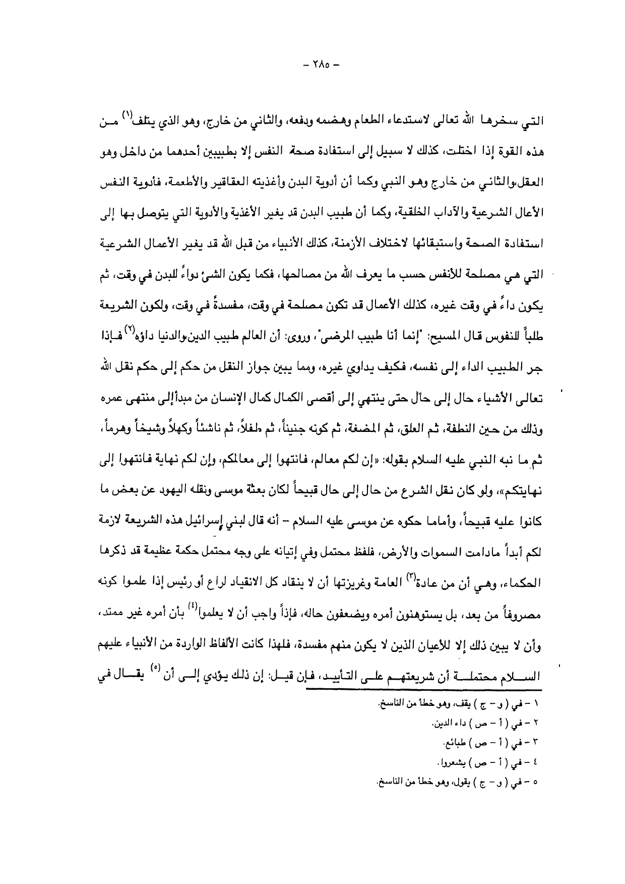 " إن لله تعالى خلفاء في الأرض مستخلفين فيها ومستعمرين فيها لنتوصل بذلك إلى مجاورته والقرب منه بحياة لا موت بعدها، وغنى لا حاجة معه، وقدرة لا يعتورها عجز، ولا سبيل إلى ذلك إلا باكتساب الصحة في النفس، وصحتها أمران: العلم والعمل، أما العلم: فمعرفة الصدق من الكذب، والجميل من القبيح، والخير من الشر، وأما العمل: فتحري الصدق في المقال والجميل في الفعال وتجنب ضديهما، وكما لا سبيل إلى استفادة صحة البدن إلا بطبيبين، أحدهما من داخل وهي القوة