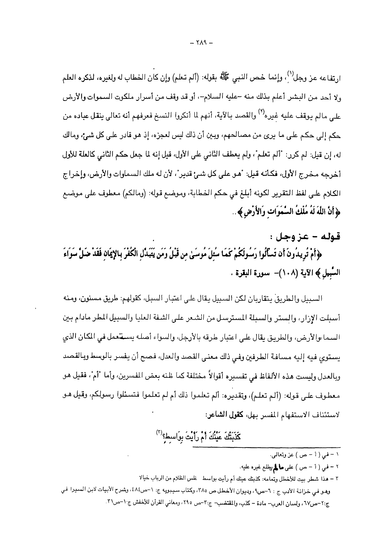 {أَلَمْ تَعْلَمْ أَنَّ اللَّهَ لَهُ مُلْكُ السَّمَاوَاتِ وَالْأَرْضِ وَمَا لَكُمْ مِنْ دُونِ اللَّهِ مِنْ وَلِيٍّ وَلَا نَصِيرٍ}