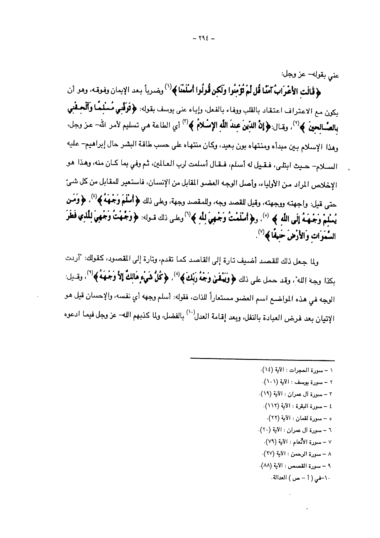 قوله- عز وجل- {بَلَى مَنْ أَسْلَمَ وَجْهَهُ لِلَّهِ وَهُوَ مُحْسِنٌ فَلَهُ أَجْرُهُ عِنْدَ رَبِّهِ وَلَا خَوْفٌ عَلَيْهِمْ وَلَا هُمْ يَحْزَنُونَ}