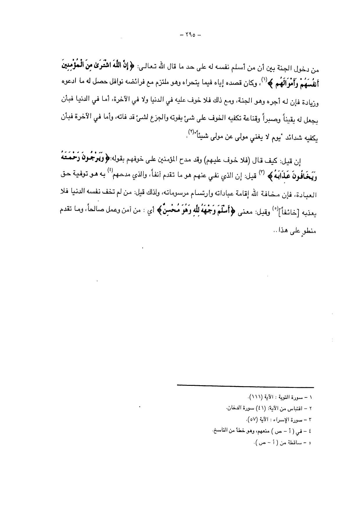 ولما جعل دلك للقصد أضيف تارة إلى القاصد كما تقدم، وتارة إلى المقصور، كقولك: " أردت بكذا وجه الله "، وقد حمل على ذلك {وَيَبْقَى وَجْهُ رَبِّكَ}، {كُلُّ شَيْءٍ هَالِكٌ إِلَّا وَجْهَهُ}، وقيل: الوجه في هذه المواضع اسم العضو مستعاراً للذات، فقوله: أسلم وجهه أي نفسه والإحسان قيل هو الإتيان بلد فرض العبادة بالنفل، وبعد إقامة العدل بالفضل ولما كذبهم الله عز وجل فيما ادعوه