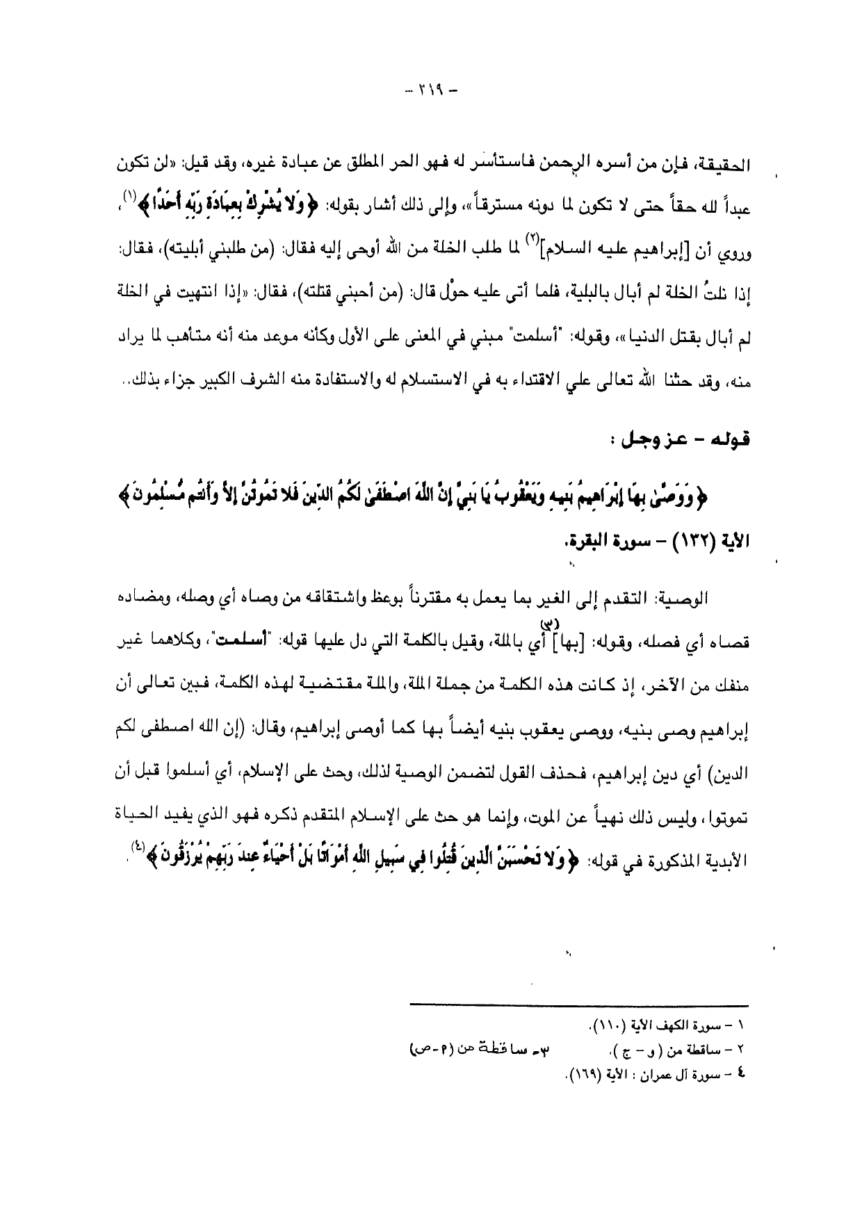 {إِذْ قَالَ لَهُ رَبُّهُ أَسْلِمْ قَالَ أَسْلَمْتُ لِرَبِّ الْعَالَمِينَ} الآية (131) سورة البقرة.