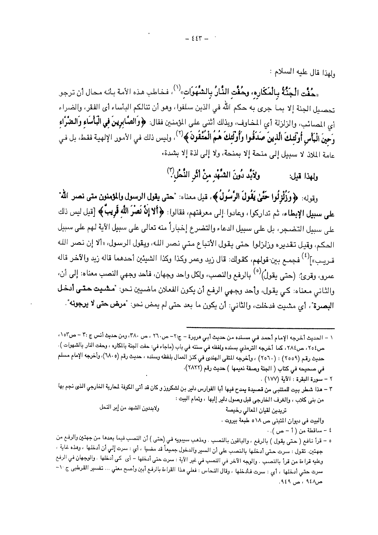 {أَمْ حَسِبْتُمْ أَنْ تَدْخُلُوا الْجَنَّةَ وَلَمَّا يَأْتِكُمْ مَثَلُ الَّذِينَ خَلَوْا مِنْ قَبْلِكُمْ مَسَّتْهُمُ الْبَأْسَاءُ وَالضَّرَّاءُ وَزُلْزِلُوا حَتَّى يَقُولَ الرَّسُولُ وَالَّذِينَ آمَنُوا مَعَهُ مَتَى نَصْرُ اللَّهِ أَلَا إِنَّ نَصْرَ اللَّهِ قَرِيبٌ}