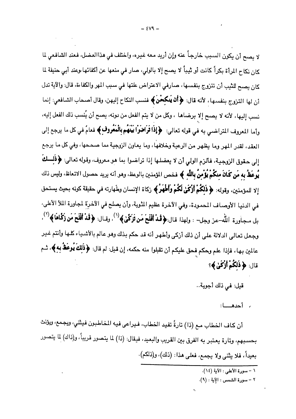وأما المعروف المتراضي به في قوله تعالي: {إِذَا تَرَاضَوْا بَيْنَهُمْ بِالْمَعْرُوفِ} فعام في كل ما يرجع إلى العقد، لقدر الهر وما يظهر من الرعية وخلافها، وما يعاون الزوجية مما صححها، وفي كل ما يرجع إلي حقوق الزوجية، فألزم الولي أن لا يعضلها إذا تراضوا بما هو معروف، وقوله تعالى: {ذَلِكَ يُوعَظُ بِهِ مَنْ كَانَ مِنْكُمْ يُؤْمِنُ بِاللَّهِ} فخص المؤمنين بالوعظ، وهو أنه يريد حصول الاتعاظ، وليس ذلك إلا للمؤمنين، وقوله: {ذَلِكُمْ أَزْكَى لَكُمْ وَأَطْهَرُ} زكاة الإنسان وطهارته في حقيقة كونه بحيث يستحق في الدنيا الأوصاف المحمودة، وفي الآخرة عظيم المثوبة، وأن يصلح في الآخرة لمجاورة الله الأعلى بل مجاورة الله- عز وجل - ولهذا قال: {قَدْ أَفْلَحَ مَنْ تَزَكَّى}، وقال: {قَدْ أَفْلَحَ مَنْ زَكَّاهَا}، وجعل تعالى الدلالة على أن ذلك أزكى وأطهر أنه قد حكم بذلك وهو عالم بالأشياء كلها وأنتم غير عالمين بها، فإذا علم وحكم فحق عليكم أن تقبلوا منه حكمه،