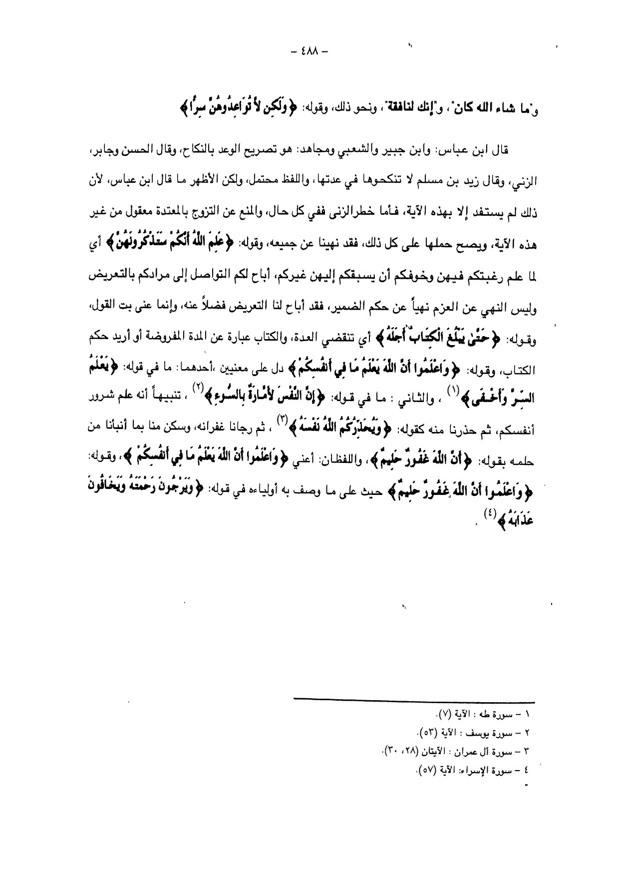 و " ما شاء الله كان "، و " إنك لنافقة "، ونحو ذلك، وقوله: {وَلَكِنْ لَا تُوَاعِدُوهُنَّ سِرًّا}