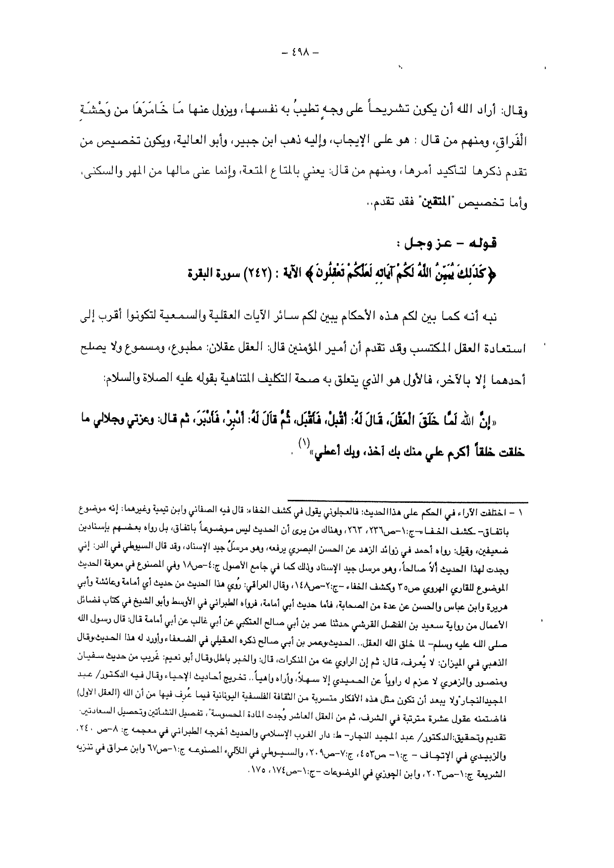 {كَذَلِكَ يُبَيِّنُ اللَّهُ لَكُمْ آيَاتِهِ لَعَلَّكُمْ تَعْقِلُونَ} الآية: (242) سورة البقرة.