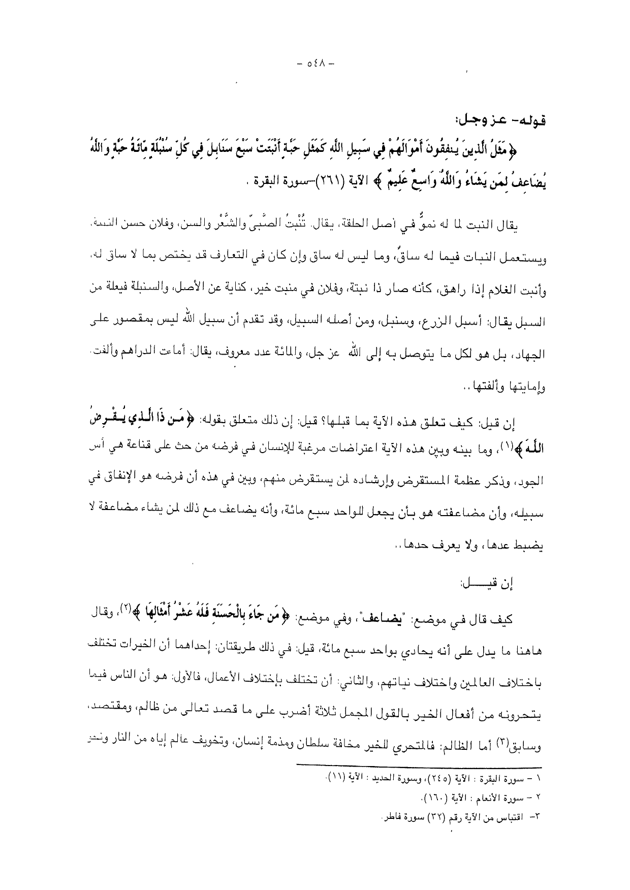 {مَثَلُ الَّذِينَ يُنْفِقُونَ أَمْوَالَهُمْ فِي سَبِيلِ اللَّهِ كَمَثَلِ حَبَّةٍ أَنْبَتَتْ سَبْعَ سَنَابِلَ فِي كُلِّ سُنْبُلَةٍ مِائَةُ حَبَّةٍ وَاللَّهُ يُضَاعِفُ لِمَنْ يَشَاءُ وَاللَّهُ وَاسِعٌ عَلِيمٌ} الآية (261) - سورة البقرة.