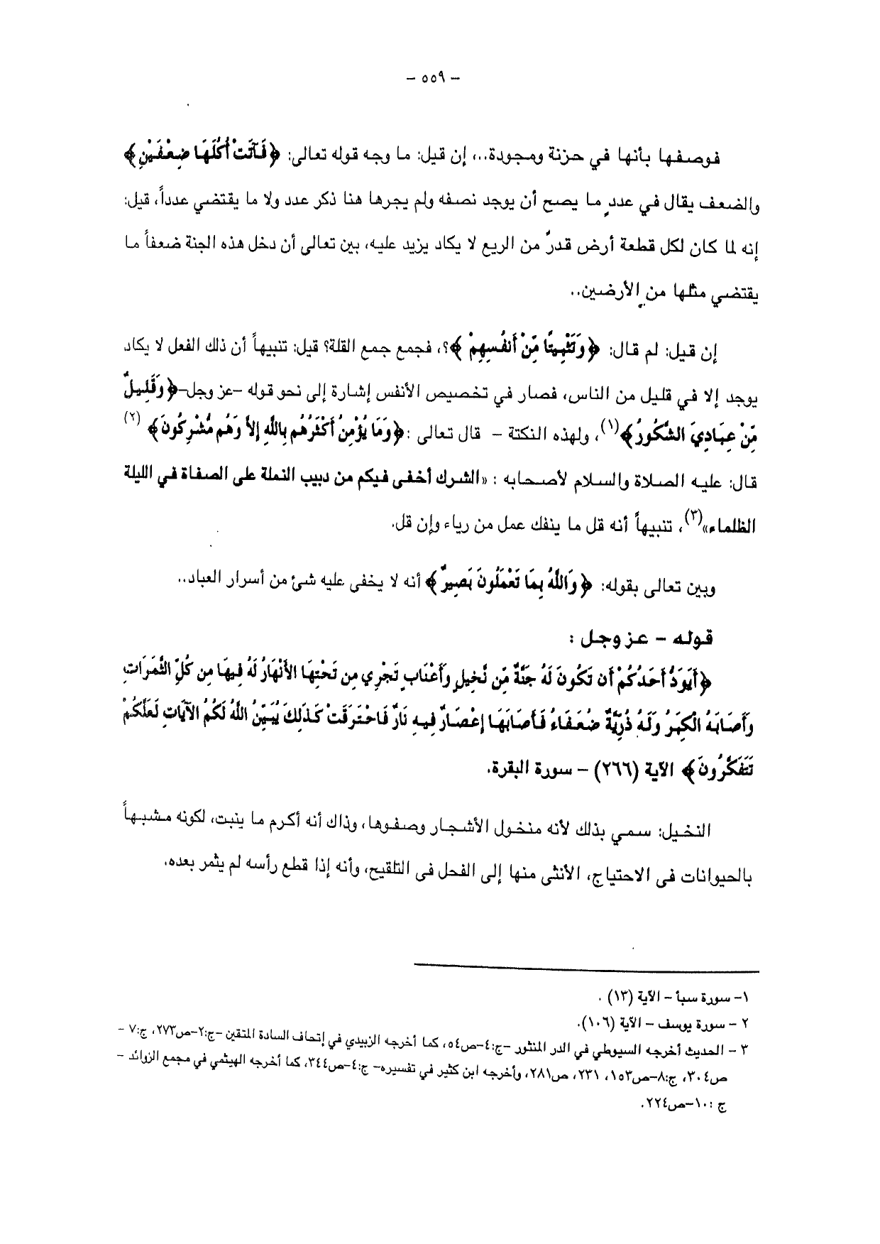 {أَيَوَدُّ أَحَدُكُمْ أَنْ تَكُونَ لَهُ جَنَّةٌ مِنْ نَخِيلٍ وَأَعْنَابٍ تَجْرِي مِنْ تَحْتِهَا الْأَنْهَارُ لَهُ فِيهَا مِنْ كُلِّ الثَّمَرَاتِ وَأَصَابَهُ الْكِبَرُ وَلَهُ ذُرِّيَّةٌ ضُعَفَاءُ فَأَصَابَهَا إِعْصَارٌ فِيهِ نَارٌ فَاحْتَرَقَتْ كَذَلِكَ يُبَيِّنُ اللَّهُ لَكُمُ الْآيَاتِ لَعَلَّكُمْ تَتَفَكَّرُونَ} الآية (266) - سورة البقرة.