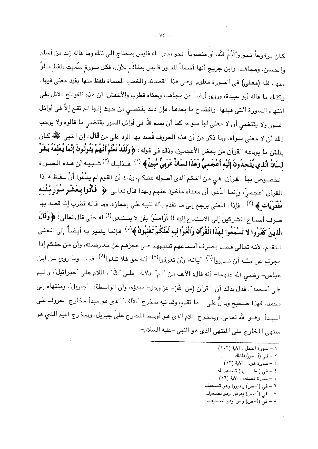 وما ذكر من أن هذه الحروف قصد بها الرد على من قال: إن النبي - صلى الله عليه وسلم - كان يتلقن ما يودعه القرآن من بعض الأعجمين، وذلك في قوله: {وَلَقَدْ نَعْلَمُ أَنَّهُمْ يَقُولُونَ إِنَّمَا يُعَلِّمُهُ بَشَرٌ لِسَانُ الَّذِي يُلْحِدُونَ إِلَيْهِ أَعْجَمِيٌّ وَهَذَا لِسَانٌ عَرَبِيٌّ مُبِينٌ} فذلك شبيه أن هذه الصورة المخصوص بها القرآن، هي من النظم الذس أصوله عندكم، وذاك أن القوم لم يدعوا أن لفظ هذا القرآن أعجمي، وإنما ادعوا أن معناه مأخوذ عنهم ولهذا قال تعالى: {فَأْتُوا بِعَشْرِ سُوَرٍ مِثْلِهِ مُفْتَرَيَاتٍ} فإذا: المعنى يرجع إلى ما تقدم بأنه تنبيه على إعجازه.