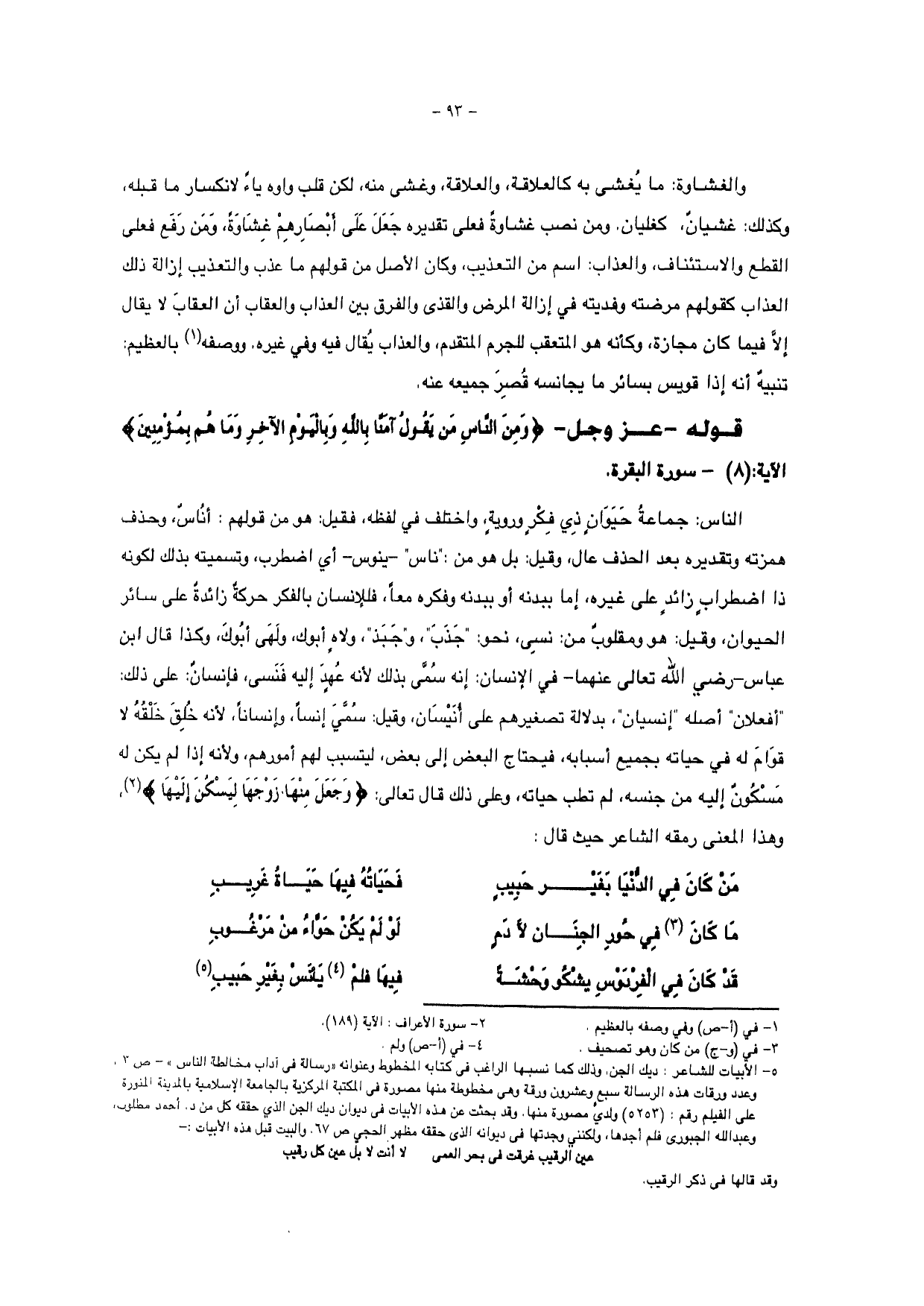 قوله - عز وجل - {وَمِنَ النَّاسِ مَنْ يَقُولُ آمَنَّا بِاللَّهِ وَبِالْيَوْمِ الْآخِرِ وَمَا هُمْ بِمُؤْمِنِينَ} الآية: (8) - سورة البقرة.