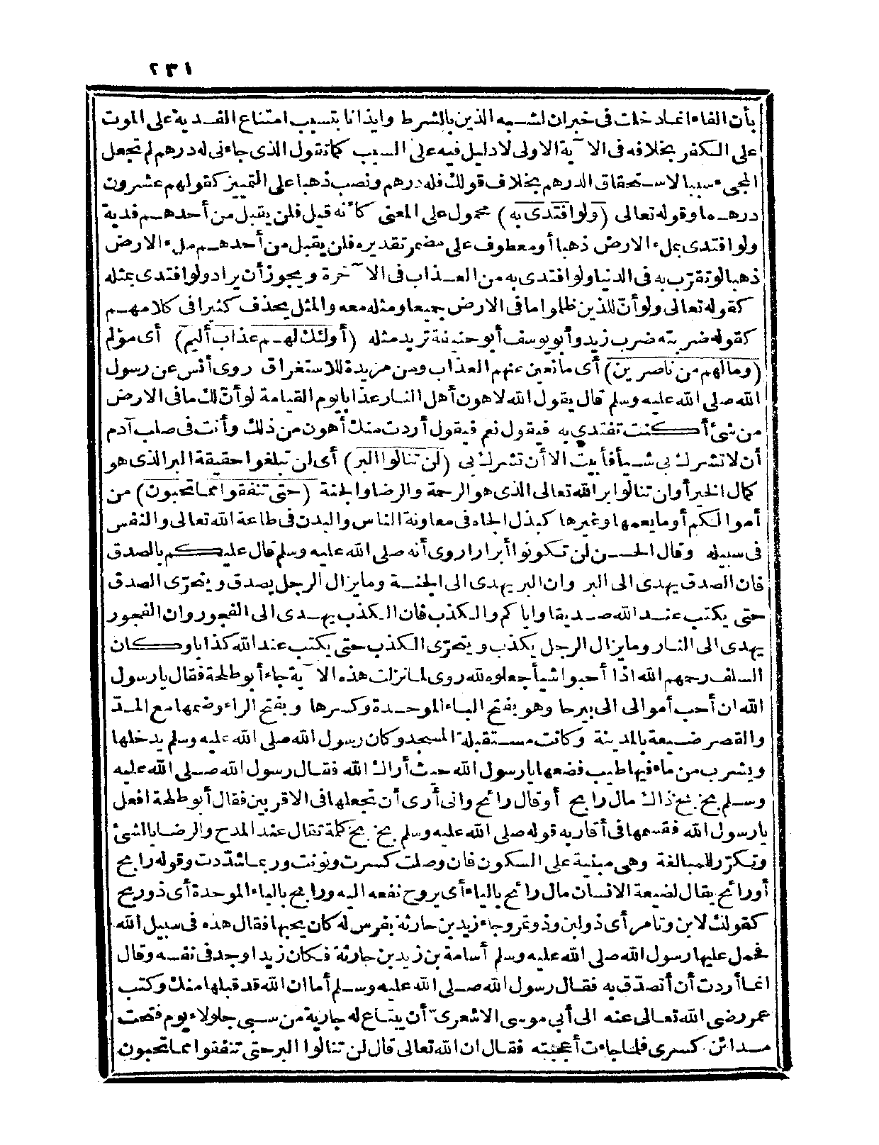 روى أنس عن رسول الله صلى الله عليه وسلم قال: «يقول الله لأهون أهل النار عذاباً يوم القيامة: لو أنّ لك ما في الأرض من شيء أكنت تفتدي به فيقول: نعم فيقول: أردت منك أهون من ذلك وأنت في صلب آدم أن لا تشرك بي شيئاً فأبيت إلا أن تشرك بي» {لن تنالوا البر} أي: لن تبلغوا حقيقة البر الذي هو كمال الخير أو لن تنالوا بر الله تعالى الذي هو الرحمة والرضا والجنة {حتى تنفقوا مما تحبون} من أموالكم أو ما يعمها وغيرها كبذل الجاه في معاونة الناس والبدن في طاعة الله تعالى والنفس في سبيله، وقال الحسن: لن تكونوا أبراراً.