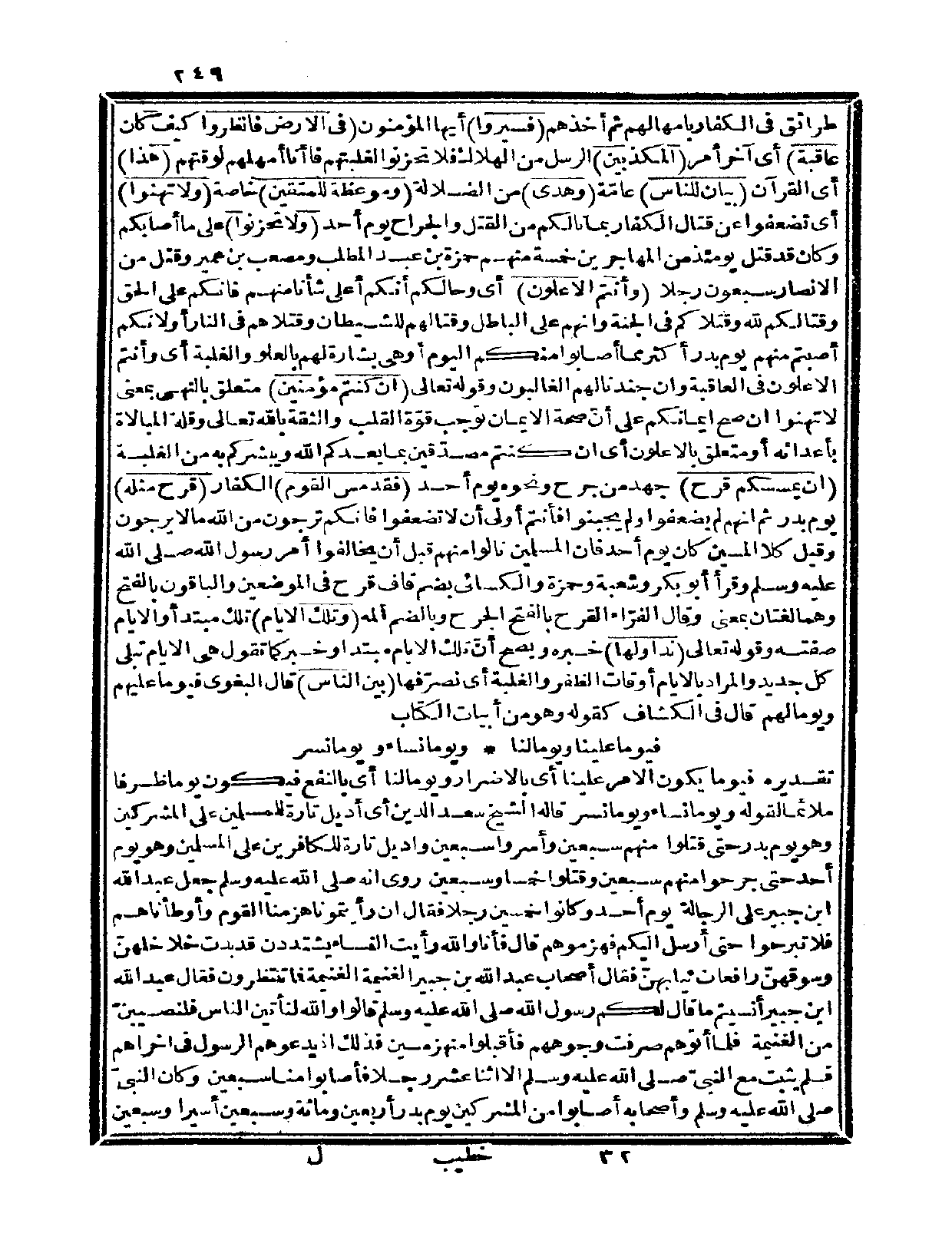 {هذا} أي: القرآن {بيان للناس} عامّة {وهدى} من الضلالة {وموعظة للمتقين} خاصة {ولا تهنوا} أي: تضعفوا عن قتال الكفار بما نالكم من القتل والجراح يوم أحد.