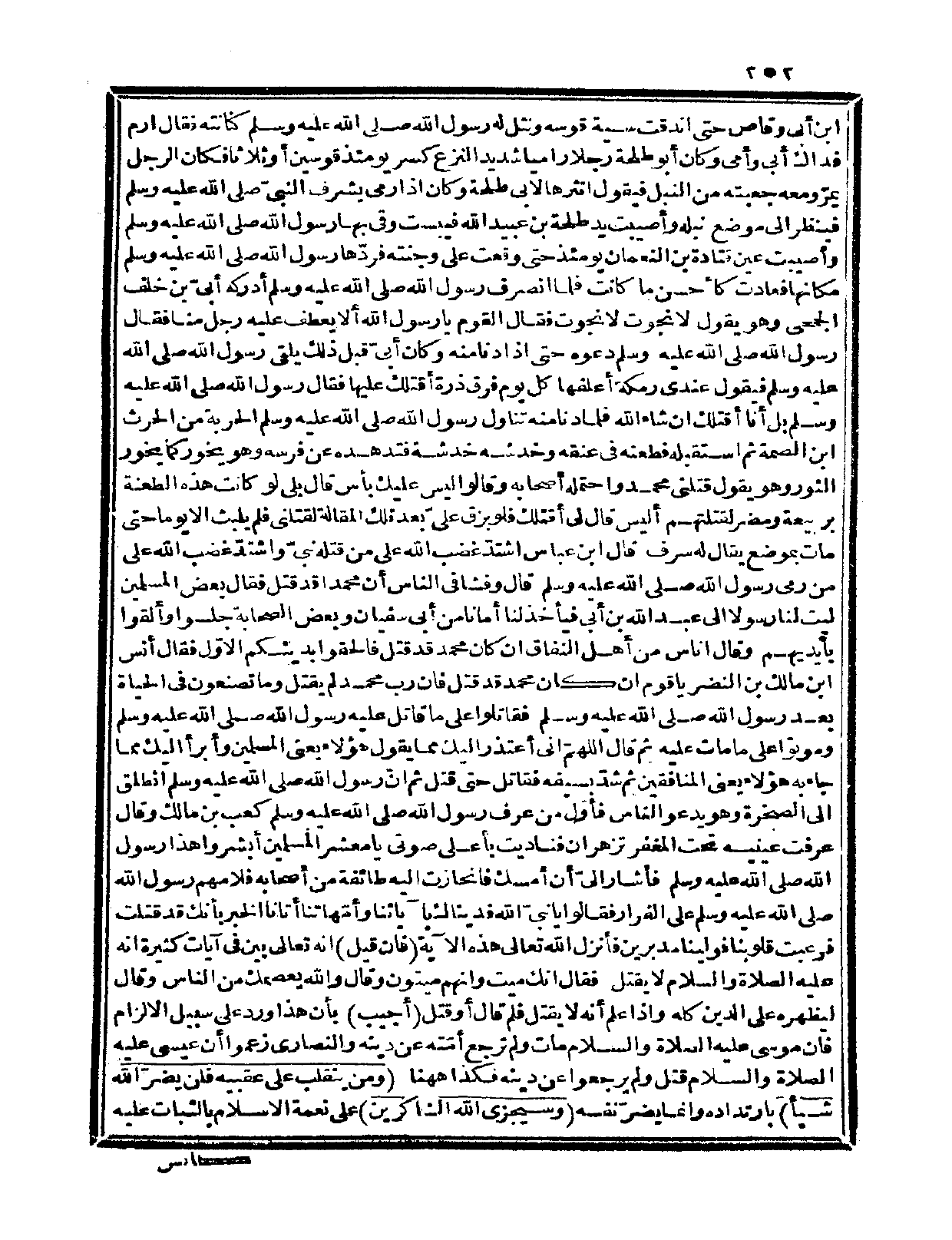 وكان أبو طلحة رجلاً رامياً شديد النزع كسر يومئذٍ قوسين أو ثلاثاً، فكان الرجل يمرّ ومعه جعبته من النبل فيقول: انثرها لأبي طلحة وكان إذا رمى يشرف النبيّ صلى الله عليه وسلم فينظر إلى موضع نبله وأصيبت يد طلحة بن عبيد الله فيبست وقى بها رسول الله صلى الله عليه وسلم وأصيبت عين قتادة بن النعمان يومئذٍ حتى وقعت على وجنته فردّها رسول الله صلى الله عليه وسلم مكانها، فعادت كأحسن ما كانت، فلما انصرف رسول الله صلى الله عليه وسلم أدركه أبيّ بن خلف الجمحي وهو يقول: لا نجوت، لا نجوت، فقال القوم: يا رسول الله ألا يعطف عليه رجل منا، فقال رسول الله صلى الله عليه وسلم «دعوه حتى إذا دنا منه وكان أبيّ قبل ذلك يلقى رسول الله صلى الله عليه وسلم فيقول: عندي رمكة أعلفها يوم فرق ذرة أقتلك عليها، فقال رسول الله صلى الله عليه وسلم «بل أنا أقتلك إن شاء الله» فلما دنا منه تناول رسول الله صلى الله عليه وسلم الحربة من الحارث بن الصمة ثم استقبله فطعنه في عنقه وخدشه خدشة فتدهده عن فرسه وهو يخور كما يخور الثور وهو يقول: قتلني محمد واحتمله أصحابه وقالوا: ليس عليك بأس قال: بلى لو كانت هذه الطعنة بربيعة ومضر لقتلتهم أليس قال لي: أقتلك فلو بزق عليّ بعد تلك المقالة لقتلني فلم يلبث إلا يوماً حتى مات بموضع يقال له سرف» .