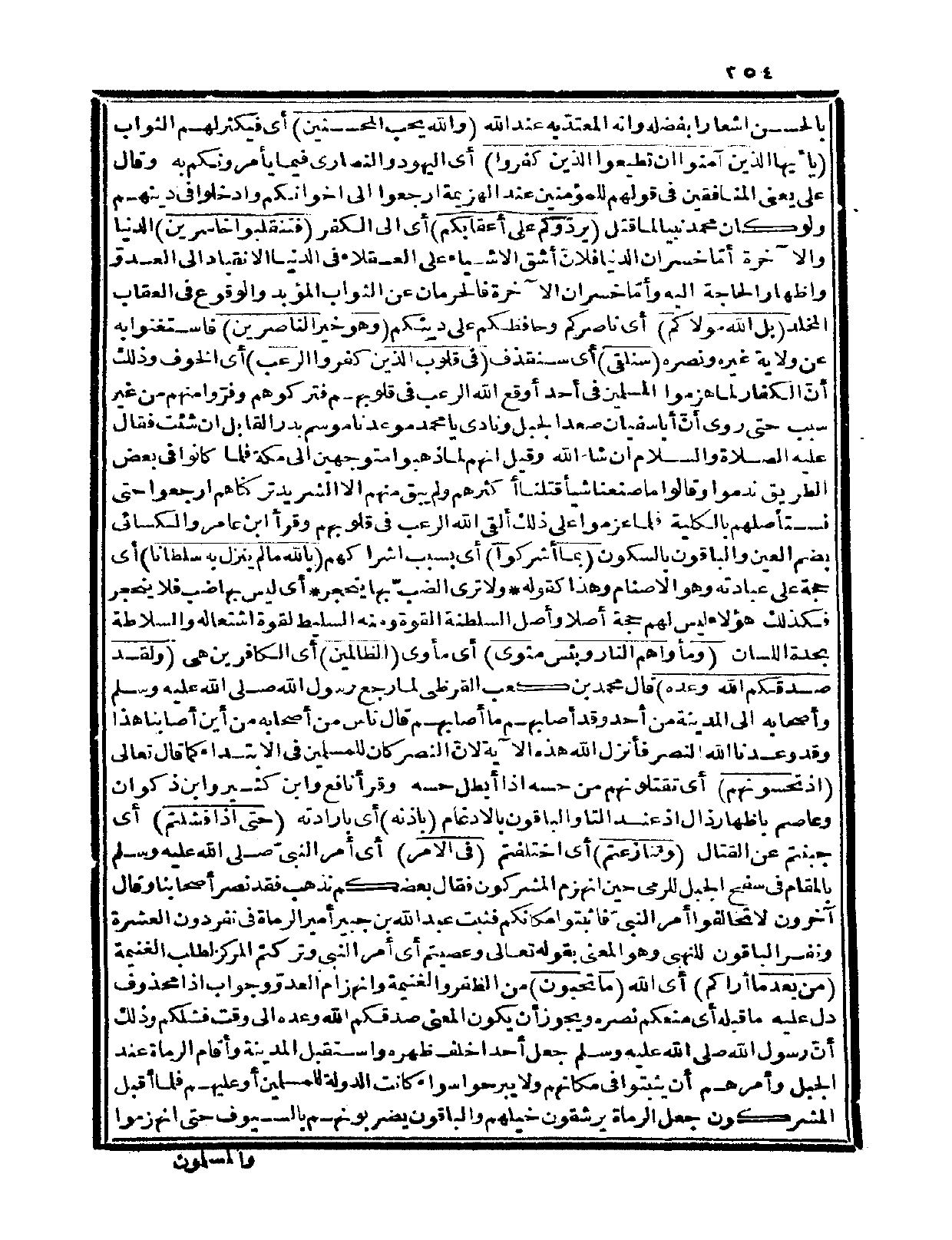 {س3ش149/ش153 يَا?أَيُّهَا الَّذِينَءَامَنُو?ا? إِن تُطِيعُوا? الَّذِينَ كَفَرُوا? يَرُدُّوكُمْ عَلَى? أَعْقَابِكُمْ فَتَنقَلِبُوا? خَاسِرِينَ * بَلِ اللَّهُ مَوْلَـ?ـاكُمْ? وَهُوَ خَيْرُ النَّاصِرِينَ * سَنُلْقِى فِى قُلُوبِ الَّذِينَ كَفَرُوا? الرُّعْبَ بِمَآ أَشْرَكُوا? بِاللَّهِ مَا لَمْ يُنَزِّلْ بِهِ? سُلْطَانًا? وَمَأْوَاهُمُ النَّارُ? وَبِئْسَ مَثْوَى الظَّالِمِينَ * وَلَقَدْ صَدَقَكُمُ اللَّهُ وَعْدَهُ?? إِذْ تَحُسُّونَهُم بِإِذْنِهِ?? حَتَّى? إِذَا فَشِلْتُمْ وَتَنَازَعْتُمْ فِى ا?مْرِ وَعَصَيْتُم مِّن? بَعْدِ مَآ أَرَاكُم مَّا تُحِبُّونَ? مِنكُم مَّن يُرِيدُ الدُّنْيَا وَمِنكُم مَّن يُرِيدُ ا?خِرَةَ? ثُمَّ صَرَفَكُمْ عَنْهُمْ لِيَبْتَلِيَكُمْ? وَلَقَدْ عَفَا عَنكُمْ? وَاللَّهُ ذُو فَضْلٍ عَلَى الْمُؤْمِنِينَ * إِذْ تُصْعِدُونَ وَتَلْوُ?نَ عَلَى? أَحَدٍ وَالرَّسُولُ يَدْعُوكُمْ فِى? أُخْرَ?ـاكُمْ فَأَثَابَكُمْ غَمَّ?ابِغَمٍّ لِّكَيْ تَحْزَنُوا? عَلَى مَا فَاتَكُمْ وَمَآ أَصَابَكُمْ? وَاللَّهُ خَبِيرُ? بِمَا تَعْمَلُونَ}