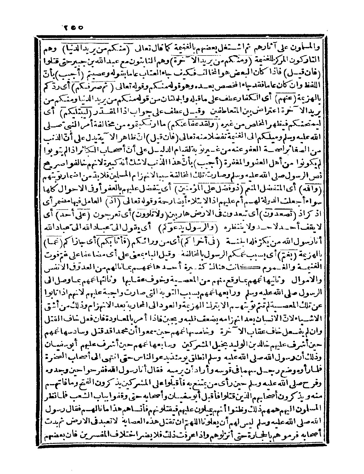 والمسلمون على آثارهم، ثم اشتغل بعضهم بالغنيمة كما قال تعالى: {منكم من يريد الدنيا} وهم التاركون المركز للغنيمة {ومنكم من يريد الآخرة} وهم الثابتون مع عبد الله بن جبير حتى قتلوا.
