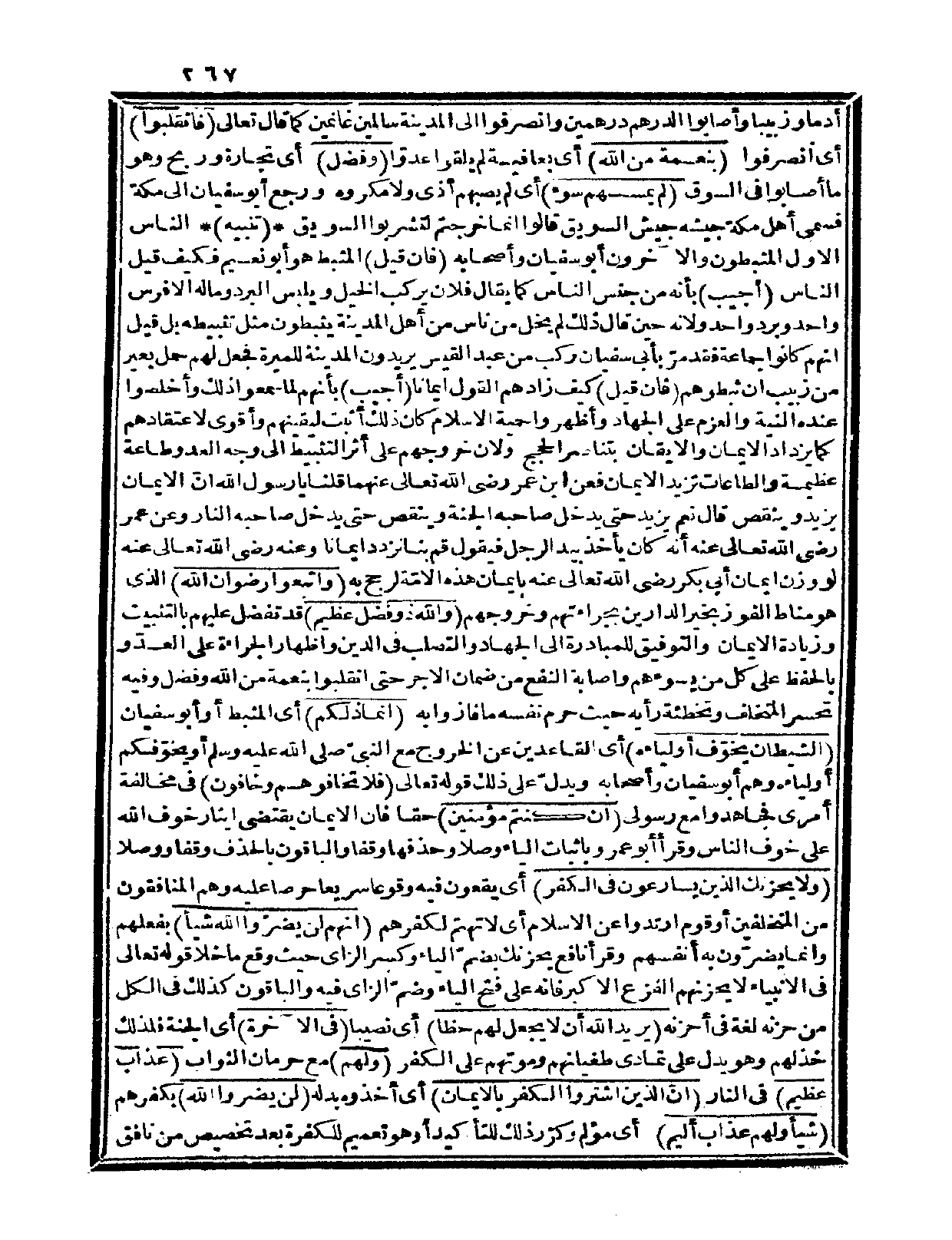 فإن قيل: كيف زادهم القول إيماناً؟ أجيب: بأنهم لما سمعوا ذلك وأخلصلوا عنده النية والعزم على الجهاد وأظهروا حمية الإسلام كان ذلك أثبت ليقينهم وأقوى لاعتقادهم كما يزداد الإيمان والإيقان بتناصر الحجج، ولأن خروجهم على أثر التثبيط إلى وجه العدو طاعة عظيمة والطاعات تزيد الإيمان فعن ابن عمر رضي الله تعالى عنهما قلنا: يا رسول الله إنّ الإيمان يزيد وينقص قال: «نعم يزيد حتى يدخل صاحبه الجنة وينقص حتى يدخل صاحبه النار» . وعن عمر رضي الله تعالى عنه أنه كان يأخذ بيد الرجل فيقول: قم بنا نزدد إيماناً، وعنه رضي الله تعالى عنه: «لو وزن إيمان أبي بكر رضي الله تعالى عنه بإيمان هذه الأمّة لرجح به» {واتبعوا رضوان الله} الذي هو مناط الفوز بخير الدارين بجراءتهم وخروجهم {وا ذو فضل عظيم} قد تفضل عليهم بالتثبيت وزيادة الإيمان والتوفيق للمبادرة إلى الجهاد والتصلب في الدين وإظهار الجراءة على العدوّ بالحفظ على كل من يسوءهم وإصابة النفع من ضمان الأجر حتى انقلبوا بنعمة من الله وفضل وفيه تحسر المتخلف وتخطئة رأيه حيث حرم نفسه ما فازوا به.