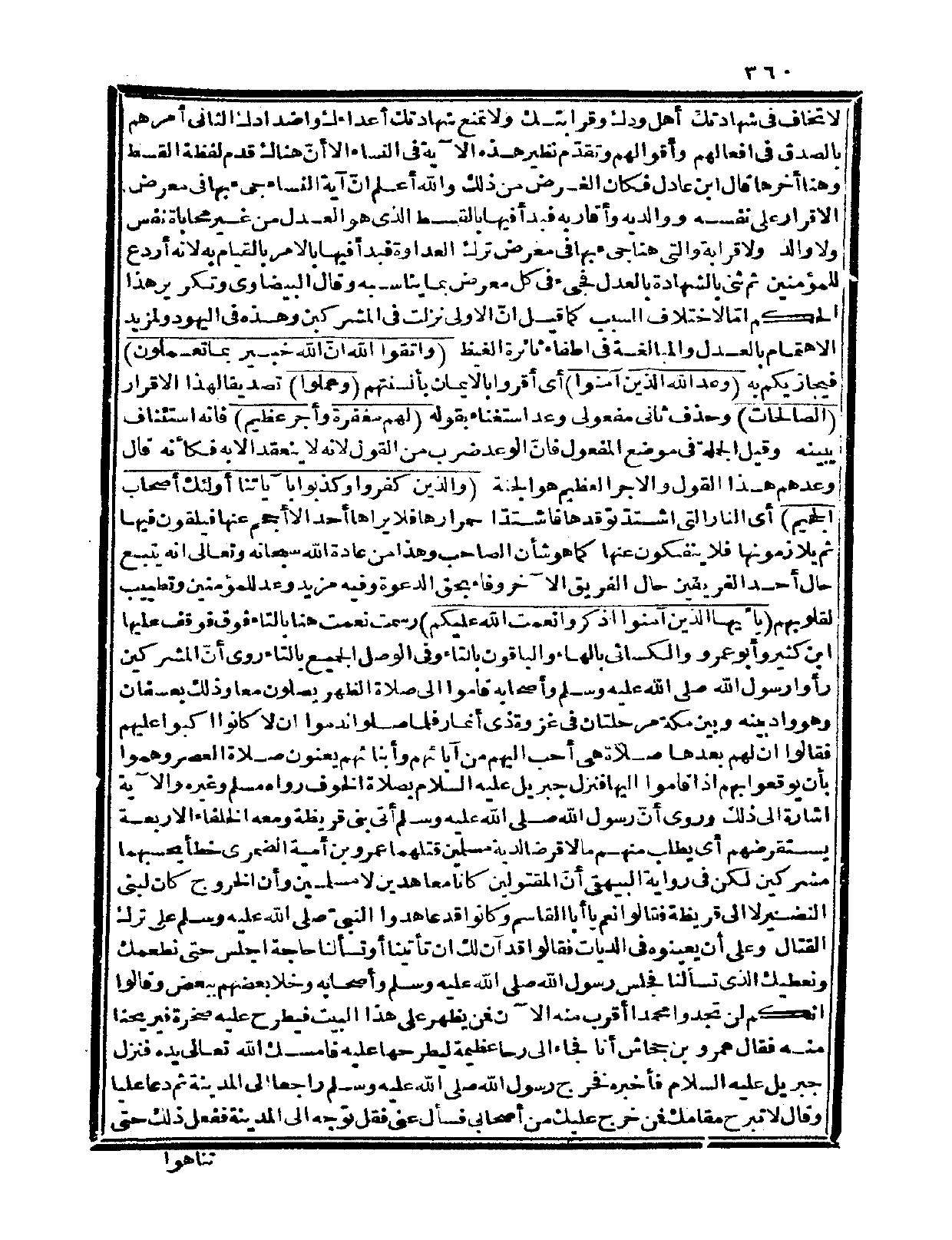 لا تخاف في شهادتك أهل ودك وقرابتك ولا تمنع شهادتك أعداءك وأضدادك. الثاني: أمرهم بالصدق في أفعالهم وأقوالهم، وتقدّم نظير هذه الآية في النساء، إلا أنّ هناك قدم لفظة القسط وهنا أخرّها، قال ابن عادل: فكان الغرض من ذلك والله أعلم إنّ آية النساء جيء بها في معرض الإقرار على نفسه ووالديه وأقاربه فبدأ فيها بالقسط الذي هو العدل من غير محاباة نفس ولا والد ولا قرابة والتي هنا جيء بها في معرض ترك العداوة فبدأ بالأمر بالقيام؛ به لأنه أردع للمؤمنين ثم ثني بالشهادة بالعدل فجيء في كل معرض بما يناسبه. وقال البيضاوي: وتكرير هذا الحكم إمّا لاختلاف السبب كما قيل: إنّ الأولى نزلت في المشركين وهذه في اليهود ولمزيد الاهتمام بالعدل والمبالغة في إطفاء ثائرة الغيظ {واتقوا الله إنّ الله خبير بما تعملون} فيجازيكم به.