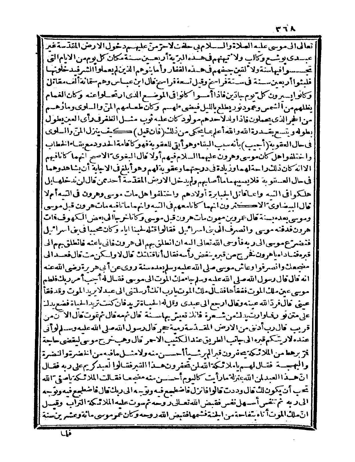 تعالى إلى موسى عليه الصلاة والسلام: بي حلفت لأحرّمنّ عليهم دخول الأرض المقدسة غير عبدي يوشع وكالب ولأتيهنهم في هذه البريّة أربعين سنة مكان كل يوم من الأيام التي تجسسوا فيها سنة، ولألقين جيفهم في هذه القفار وأما بنوهم الذين لم يعملوا الشر فيدخلونها فلبثوا أربعين سنة في ستة فراسخ، وقيل: تسعة فراسخ قال ابن عباس: وهم ستمائة ألف مقاتل وكانوا يسيرون كلّ يوم جادّين فإذا أمسوا كانوا في الموضع الذي ارتحلوا عنه وكان الغمام يظلّهم من الشمس وعمود نور يطلع بالليل فيضيء لهم وكان طعامهم المنّ والسلوى وماؤهم من الحجر الذي يحملون فإذا ولد لأحدهم مولود كان عليه ثوب مثل الظفر في رأي العين يطول بطوله ويتسع بقدرة الله والله أعلم بما يحكى من ذلك.