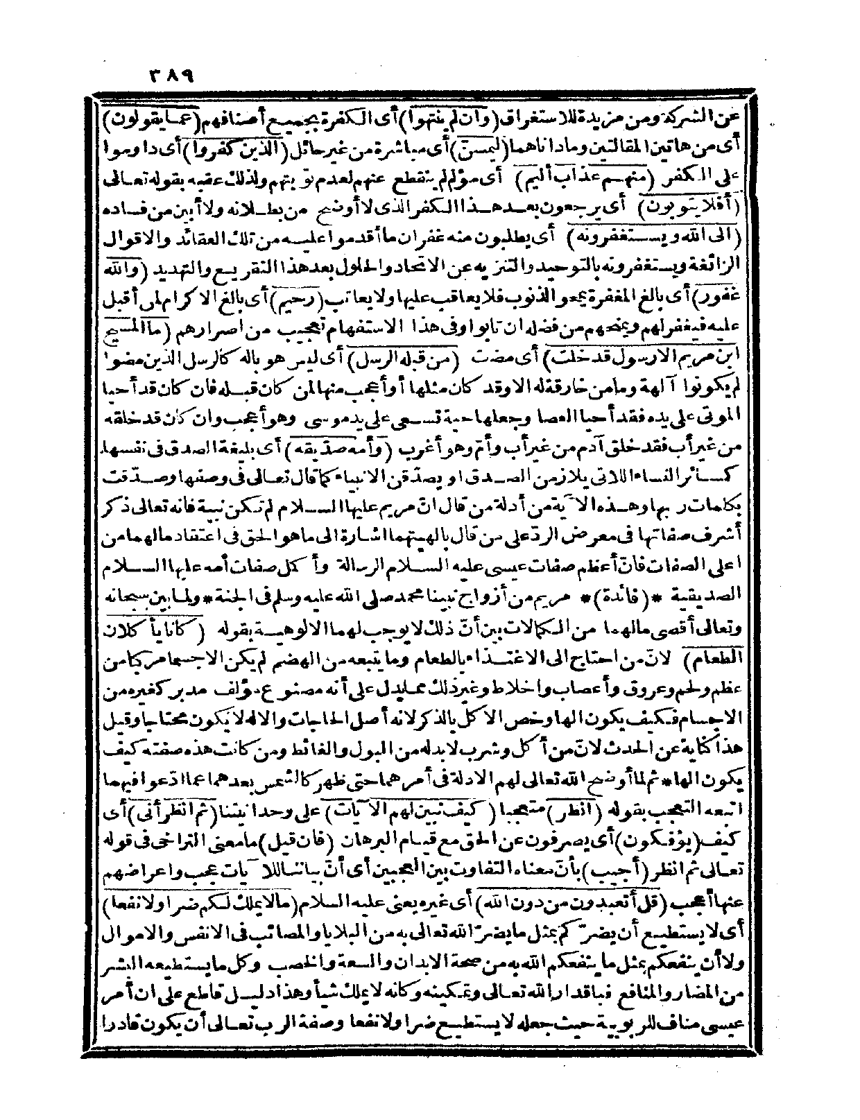 فائدة: مريم من أزواج نبينا محمد صلى الله عليه وسلم في الجنة. ولما بين سبحانه وتعالى أقصى ما لهما من الكمالات بين أنّ ذلك لا يوجب لهما الألوهية بقوله: {كانا يأكلان الطعام} لأنّ من احتاج إلى الاغتذاء بالطعام وما يتبعه من الهضم لم يكن إلا جسماً مركباً من عظم ولحم وعروق وأعصاب وأخلاط وغير ذلك، مما يدل على أنه مصنوع مؤلف مدبر كغيره من الأجسام فكيف يكون إلهاً، وخص الأكل بالذكر لأنه أصل الحاجات والإله لا يكون محتاجاً وقيل: هذا كناية عن الحدث لأنّ من أكل وشرب لا بد له من البول والغائط ومن كانت هذه صفته كيف يكون إلهاً؟ ثم لما أوضح الله تعالى لهم الأدلة في أمرهما حتى ظهر كالشمس بعدهما عما ادّعوا فيهما اتبعه التعجب بقوله: {انظر} متعجباً {كيف نبين لهم الآيات} على وحدانيتنا {ثم انظر أنى} أي: كيف {يؤفكون} أي: يصرفون عن الحق مع قيام البرهان.