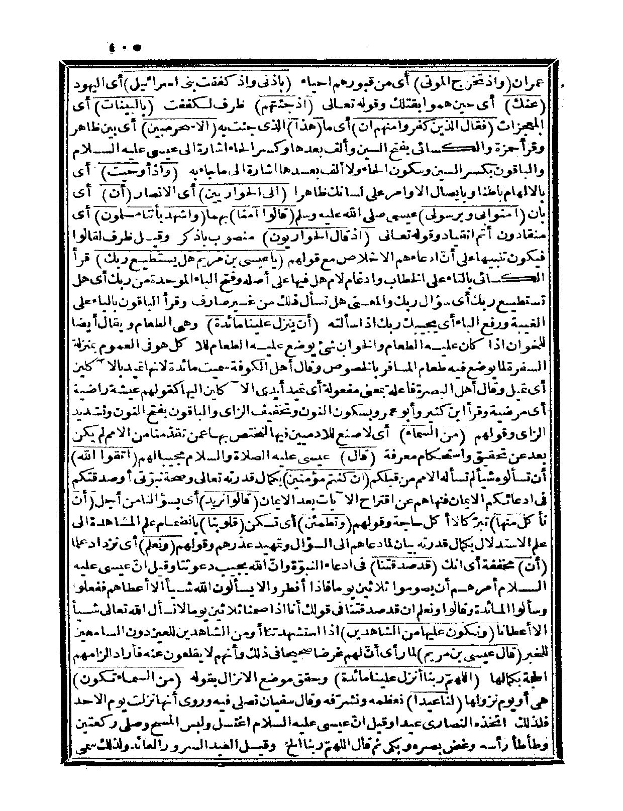 {إذ قال الحواريون} منصوب باذكر. وقيل: ظرف لقالوا فيكون تنبيهاً على أنّ ادعاءهم الإخلاص مع قولهم: {يا عيسى بن مريم هل يستطيع ربك} قرأ الكسائي بالتاء على الخطاب وإدغام لام هل فيها على أصله، وفتح الباء الموحدة من ربك أي: هل تستطيع ربك أي: سؤال ربك والمعنى: هل تسأل ذلك من غير صارف؟ وقرأ الباقون بالياء على الغيبة ورفع الباء أي: يجيبك ربك إذا سألته {أن ينزل علينا مائدة} وهي الطعام ويقال أيضاً للخوان إذا كان عليه الطعام، والخوان: شيء يوضع عليه الطعام للأكل هو في العموم بمنزلة السفرة لما يوضع فيه طعام المسافر بالخصوص، وقال أهل الكوفة: سميت مائدة لأنها تميد بالآكلين أي: تميل، وقال أهل البصرة فاعلة بمعنى مفعولة أي: تميد أيدي الآكلين إليها كقولهم: عيشة راضية أي: مرضية، وقرأ ابن كثير وأبو عمرو بسكون النون وتخفيف الزاي والباقون بفتح النون وتشديد الزاي وقولهم: {من السماء} أي: لا صنع للآدميين فيها لنختص بها عمن تقدّمنا من الأمم لم يكن بعد عن تحقيق واستحكام معرفة {قال} عيسى عليه الصلاة والسلام مجيباً لهم {اتقوا الله} أن تسألوه شيئاً لم تسأله الأمم من قبلكم {إن كنتم مؤمنين} بكمال قدرته تعالى وصحة نبوّتي أو صدقتكم في ادعائكم الإيمان فنهاهم عن اقتراح الآيات بعد الإيمان.
