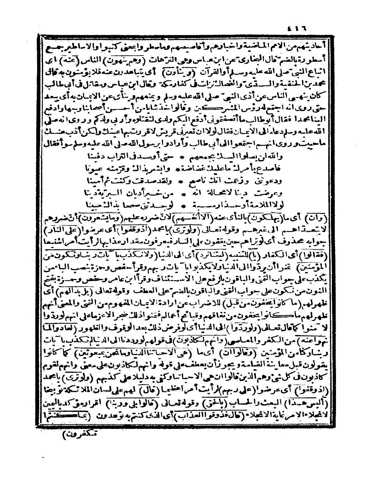 وروي أنه صلى الله عليه وسلم دعاه إلى الإيمان فقال: لولا أن تعيرني قريش لأقررت بها عينك ولكن أذب عنك ما حييت.